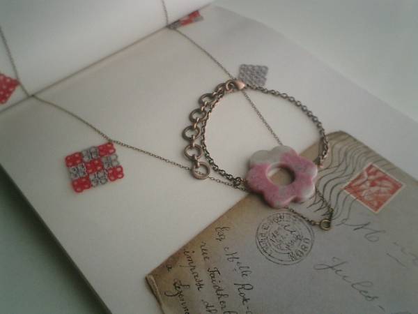 エキセントリック少女・・シリーズです♪ブルーデニムに・・キュートなロードナイトのブレスレットです♪繊細なチェーンに27ミリ位のロードナイトのフラワーリングを合わせました♪甘すぎないグレーピンクのロードナイトが可憐な表情です♪デニムからワンピースまで色々なシーンで楽しんでいただけます♪長さは16センチ+アジャスター7センチで最長23センチ位です♪お揃いのネックレスも出品しています♪シンプルで合わせやすいデザインを考えて作りました♪ハンドメイドをご理解いただいてノーリターン、ノークレームでお願いします♪