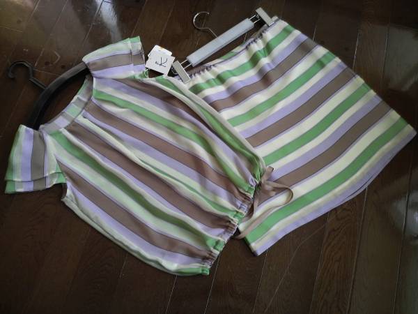 未着タグ付 KUMIKYOKU 組曲 ブラウス裾紐リボンブラジング キャミソール付