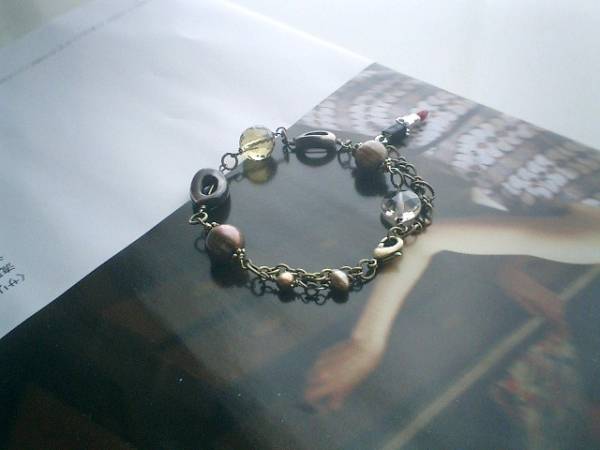 パール物語・・シリーズです♪シックなアンティークゴールドの淡水パールのブレスレットです♪繊細なスモーキークォーツやレモン水晶を合わせてアンニュイな表情です♪8ミリから9ミリ位のポテトの淡水パール、10ミリのコインカットのスモーキークォーツ、10ミリのラウンドカットのレモン水晶、10ミリ、12ミリのオーバルリングのブラックシェルなどニュアンスのある石を集めました♪長さは全長23センチ位で調節自由です♪お揃いのネックレスも出品しています♪シンプルで飽きのこないいつまでも着けられるデザインを考えて作りました!ハンドメイドをご理解頂いてノークレーム、ノーリターンでお願いします