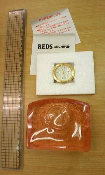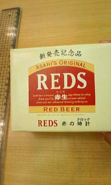 1997年に全国展開したアサヒビールから出た鮮やかな赤褐色が特徴のレッドタイプ濃色生ビール「REDS/レッズ」の新発売記念の赤の時計です。