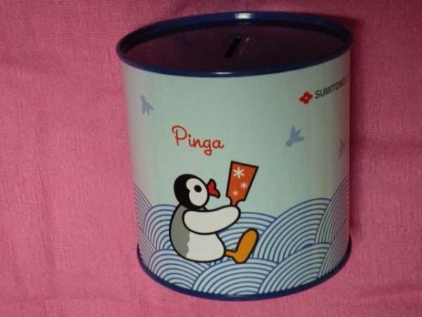 激レア!カワイイ♪ 住友生命 PINGU ピングー&ピンガ&ロビ 缶製 貯金箱(非売品)