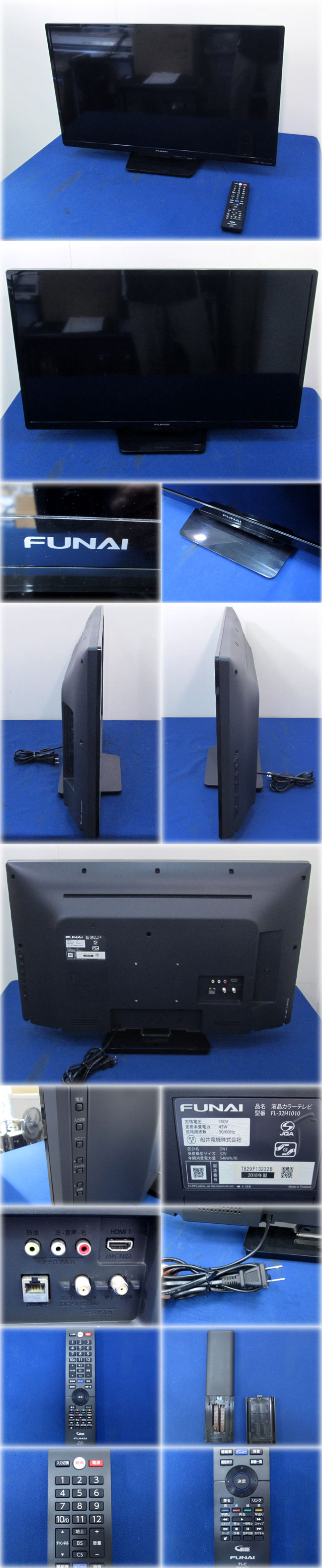 フナイ 32V型液晶テレビ FL-32H1010 を出品いたします。 ■特徴■ 寝室や子供部屋など 2台目テレビにおすすめ。 USB-HDDで 裏番組録画もできます。 2チューナー搭載で裏番組録画が可能 テレビ視聴用のチューナーとは別に、 録画用のチューナーを搭載。 視聴中の番組とは別の番組を録画できます。 料理番組のレシピなどが確認しやすい「静止画機能」 必要なシーンでテレビ映像を静止できます。 気になるお店やキャンペーンの応募など、 メモを取りたい場面にも便利です。 臨場感と聴きやすさを両立。 サウンドの迫力を高めながら、 セリフの聴きやすさも追求。 USBハードディスク録画対応※ HDDを増設できます。 市販品のUSBハードディスクを接続して、 録画できます。 録りたいときは、このボタンだけ かんたんに使える「一発録画」。 上部の中央に「録画」ボタンを配置。 このボタンを押すだけで、 放送中の番組がすぐに録画できます。 番組表で録りたい番組があるときも このボタンをひと押しで、すぐに予約できます。 快適操作をアシストするホームメニュー。 「メニュー」ボタンを押すと、 主要操作ができる「ホームメニュー」を表示。 すぐに快適な操作が可能です。 ファンリンク(HDMI-CEC) テレビリモコンでレコーダーなどもまとめて操作。 HDMI-CEC対応の機器と接続すれば、 テレビのリモコンで他の機器も操作できます。 また、テレビの番組表からFUNAIブルーレイへ 録画予約※もできます。 ■仕様■