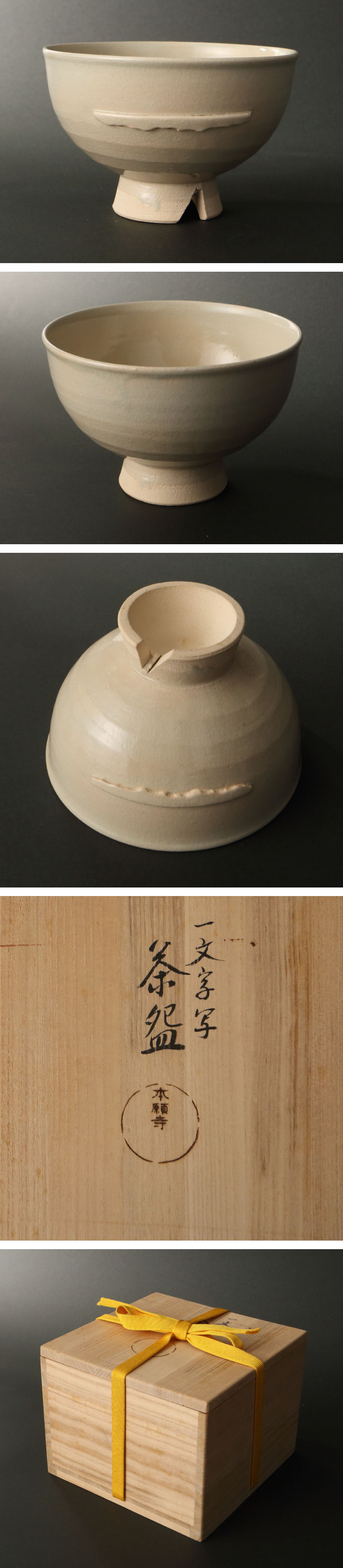 委託HK◇本願寺 一文字写呉器茶碗 共箱(茶道具 陶磁器 陶芸 京焼 割高台 記念品 白 抹茶碗 茶事 茶席 茶の湯 高麗茶碗 名物 朝鮮 中国)