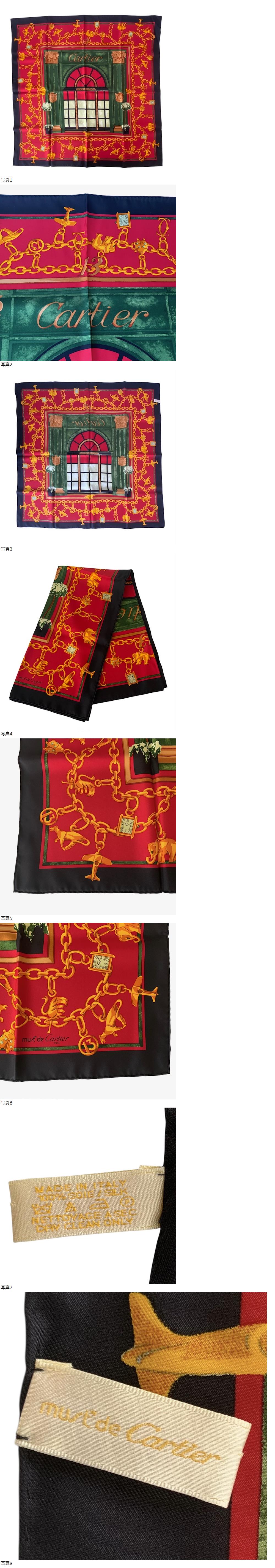 Cartier カルティエ マストドゥカルティエ スカーフ レッド グリーン ブラック マルチカラー シルク レディース
