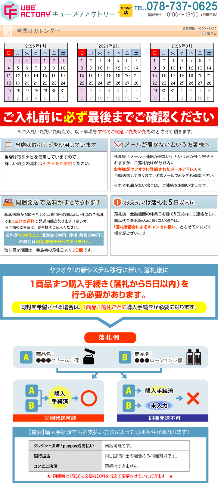 | 送料 | 800円 (北海道1000円、沖縄、離島1500円) 【 同梱発送 : 可 】 ※沖縄、離島のお客様は、発送業者が異なる場合があります。 (その際、実際の送料と異なる場合があります) ※着払い、定形外郵便等、他の発送方法は取扱いしておりません。 |