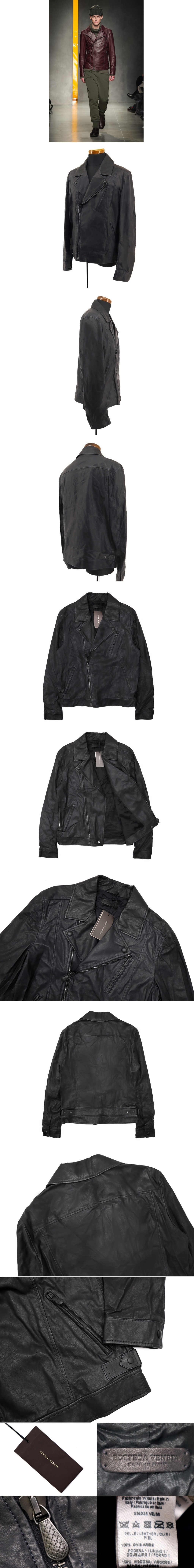 120万新品◆50=L◆ボッテガヴェネタ イントレジップ 軽量ライダースレザーブルゾン ジャケット 濃紺ネイビー