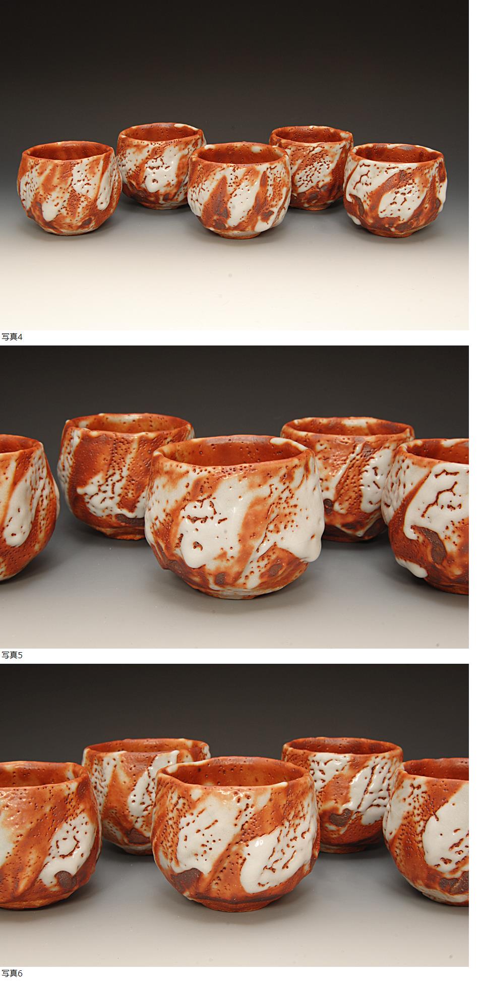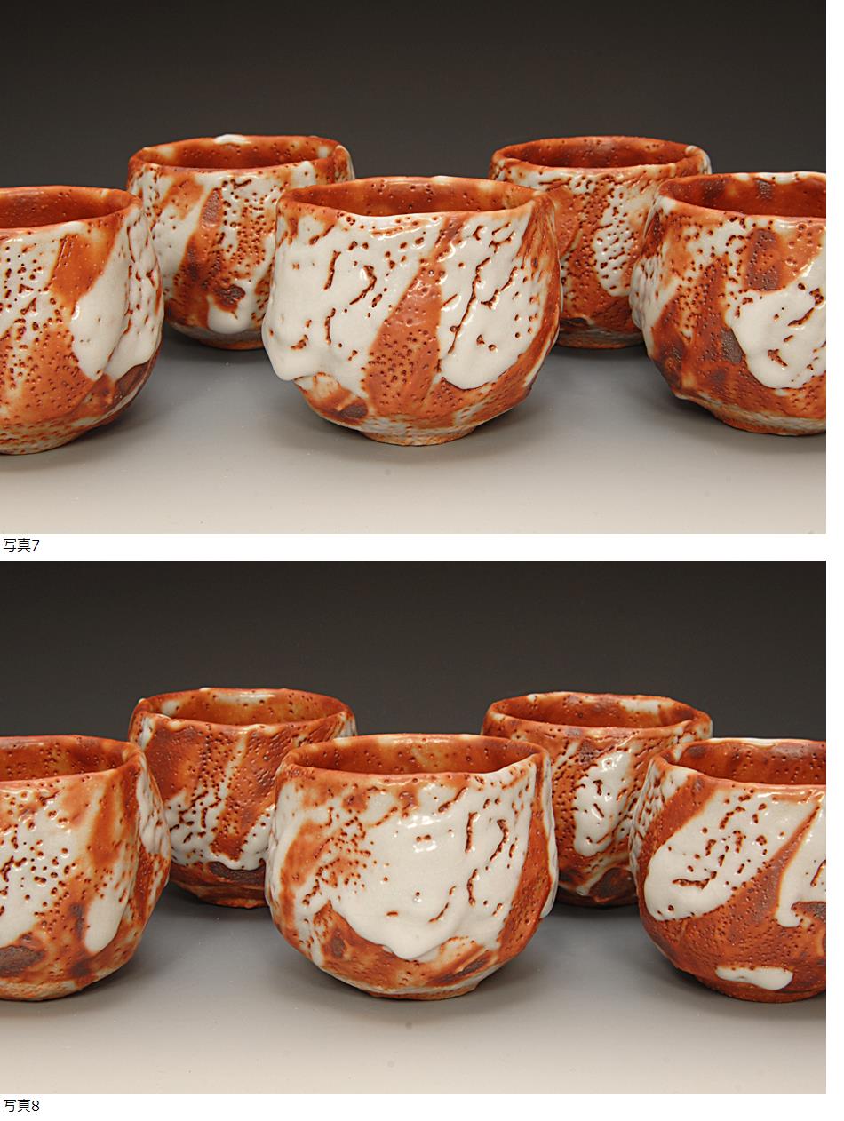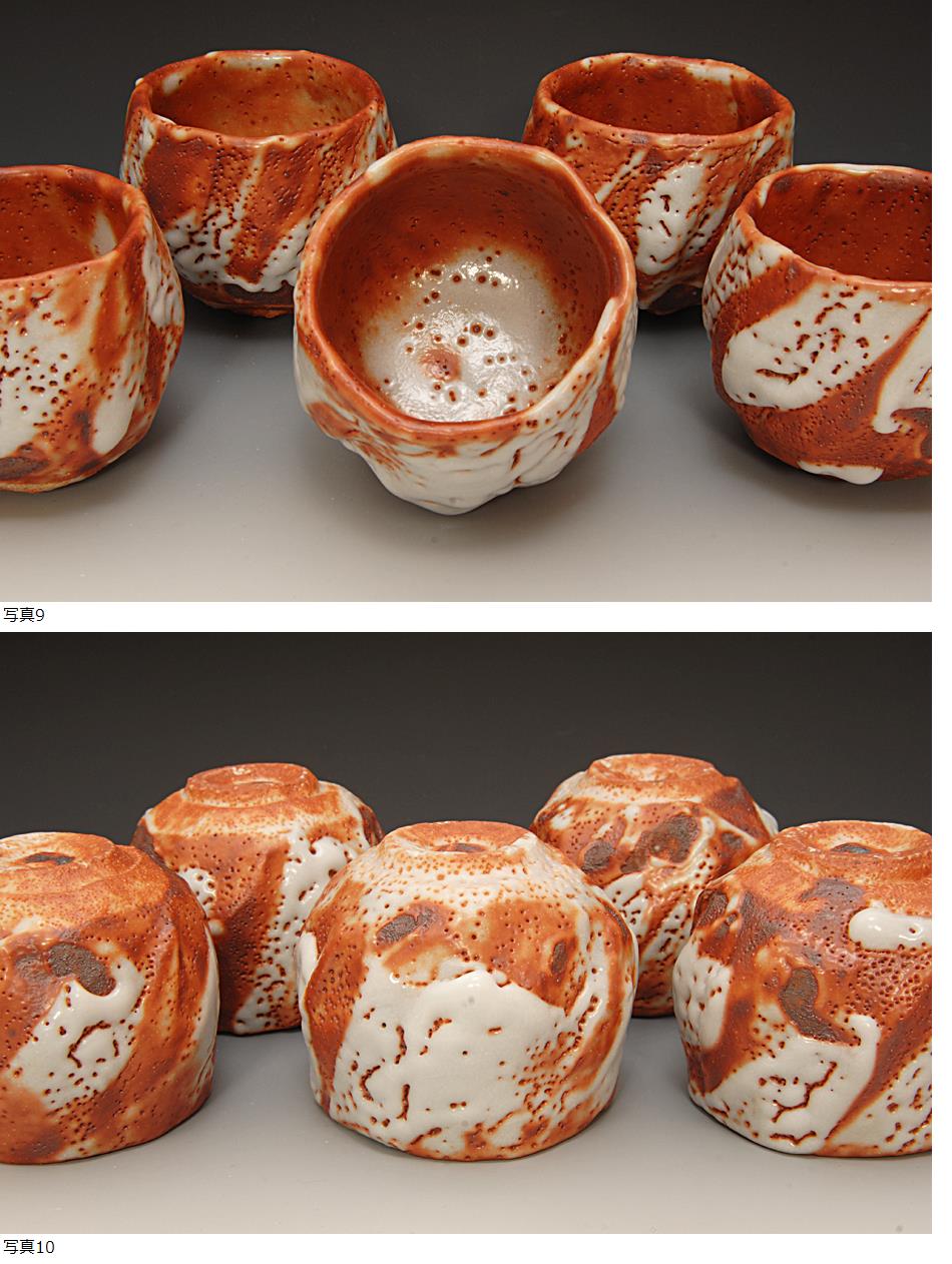 独特の迫力十分な釉薬の変化と鮮やかな緋色が魅力的な意外と作品の少ない向こう付け五客揃いです。