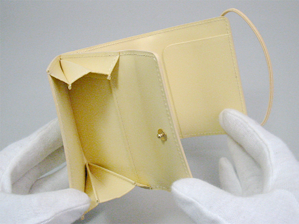 | 特徴 | 廃番品のコインケース、ヴァニラです。ゴムでしっかりと固定します。ポケット3あり。 | ||