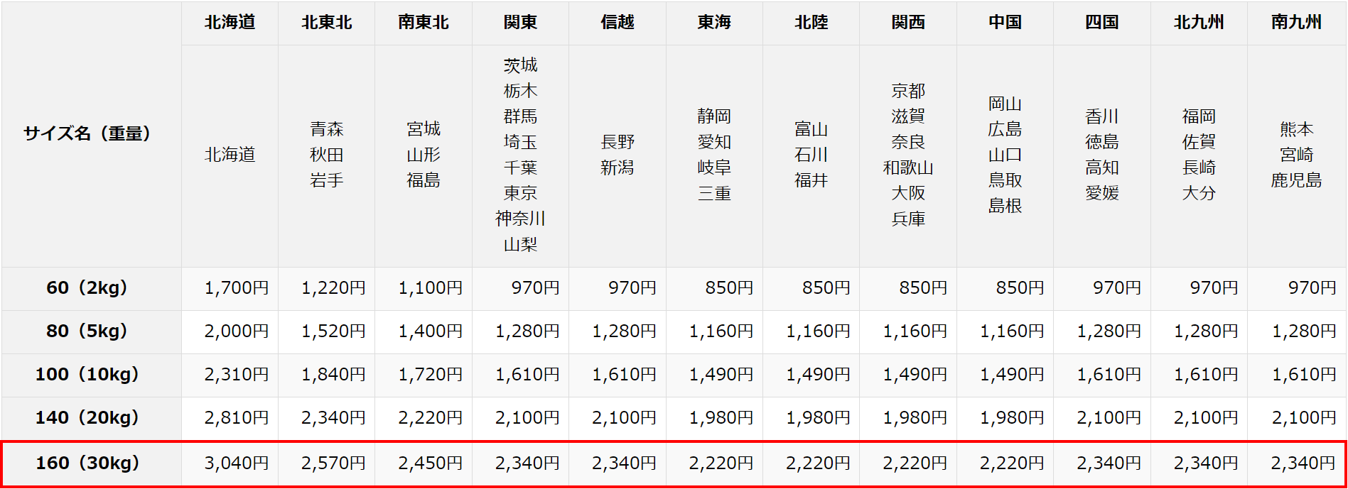 请参考商品网页上的说明,若无说明,一般普通3KG左右的普通件700日元左右,超大件2000日元至1万日元不等。下单前有疑问的请咨询客服。