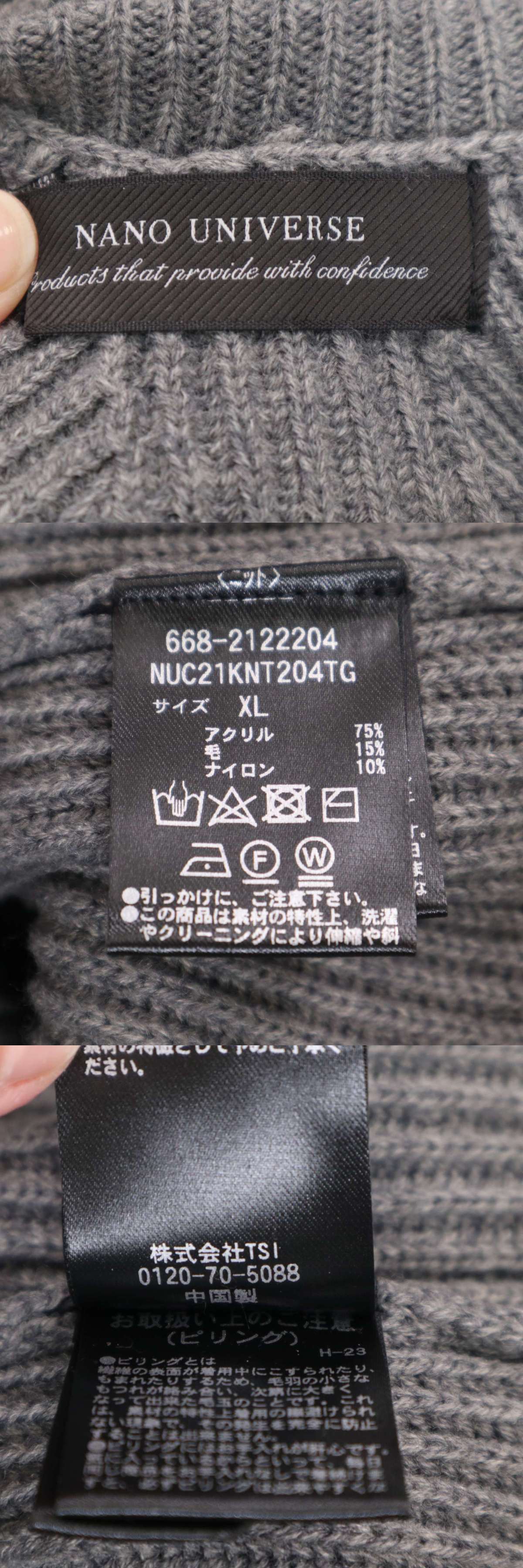 nano universe ナノユニバース 秋冬 ニット★ タートルネック セーター ラグラン ニット Sz.XL メンズ 灰