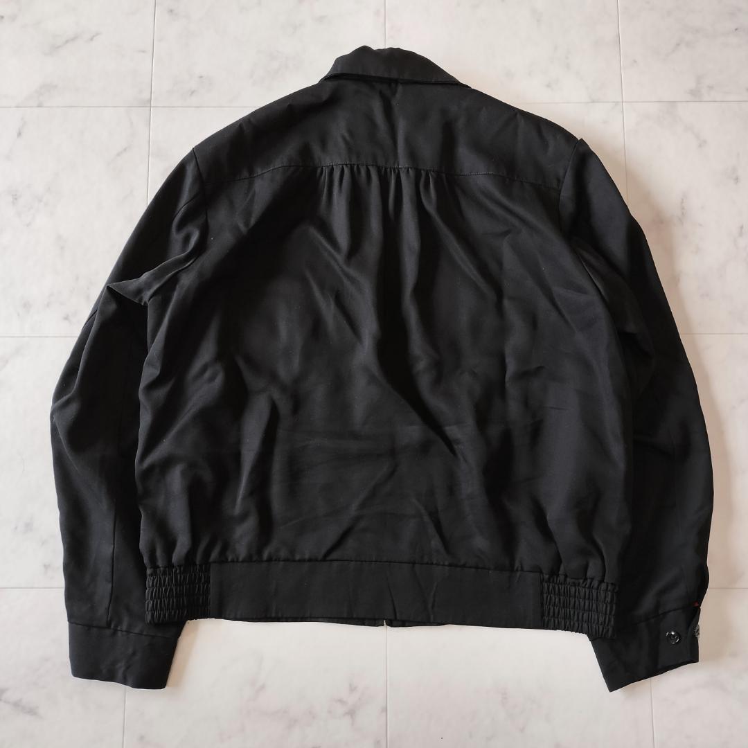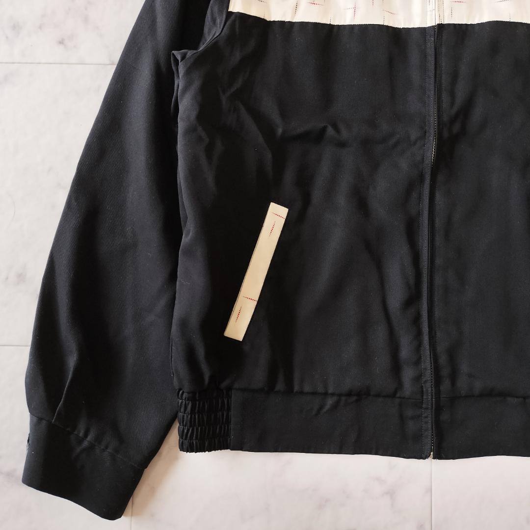 強撚糸を用いたレーヨンギャバジン生地の独特な艶感とシャリ感が特徴的で、ブラックとホワイトの切り替えがより50年代らしさを演出します。日本の絣のような柄もポケット口のアクセントに使われ、当時流行したデザインを忠実に再現しています。