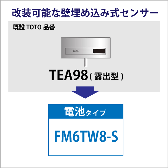 ミナミサワ FM6TW8-S TOTO TEA98用 壁埋め込み改装用小便器センサー フラッシュマン リカバリー1 電池タイプ