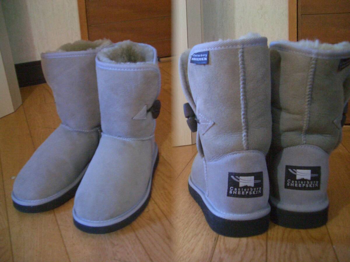 Canterbury SHEEPSKINニュージーランド*羊革ムートン裏側ボアあたたかショートブーツ新品同様*W5*22.0~22.5
