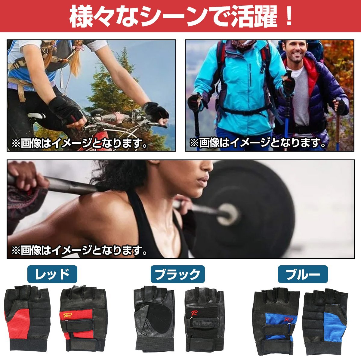 [新品即納]ハーフフィンガーグローブ フィンガーレスグローブ ハーフグローブ Lサイズ レッド 赤 指なし 手袋 トレーニング バイク