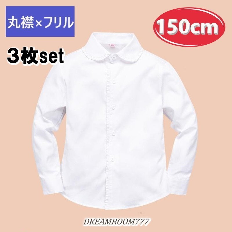 お得な3枚set★綿100% 丸襟×フリル ブラウス【150cm】ワイシャツ 白シャツ 学生服 フォーマル 冠婚葬祭 制服