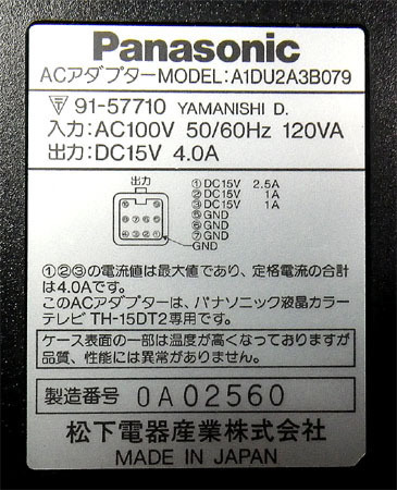 ■Panasonic ACアダプター A1DU2A3B079 (15V/4A)