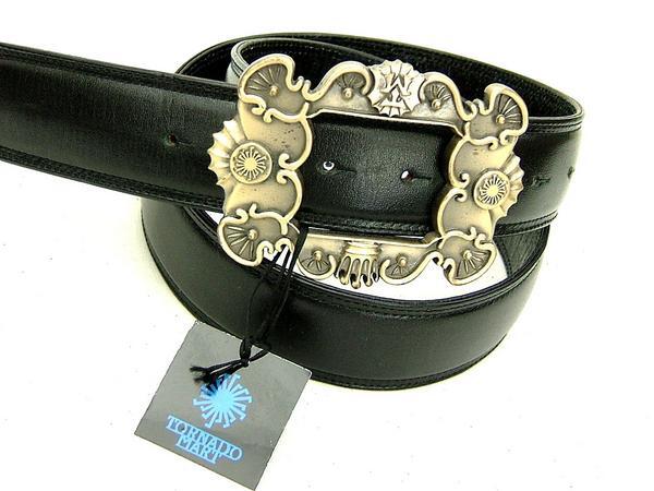 新品 トルネードマート 重厚バックル 黒 レザー本革ベルト 352A