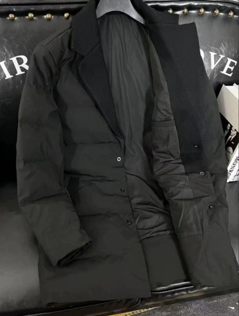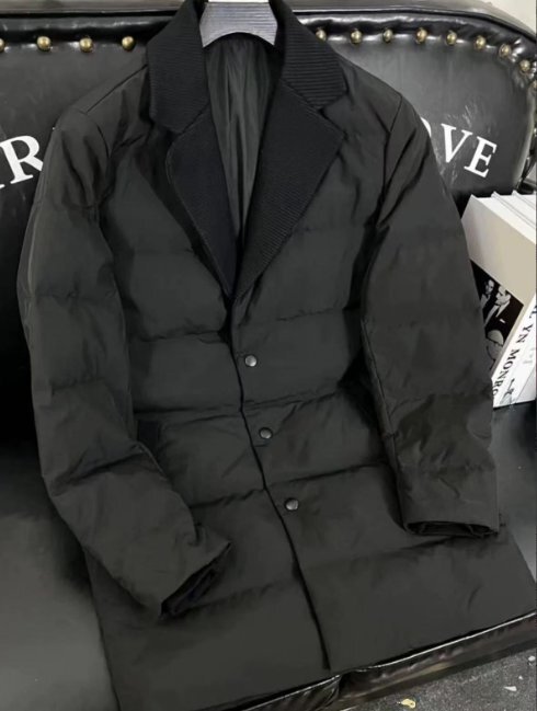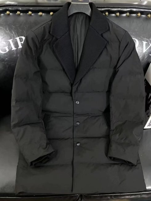 冬新作 メンズ 中長丈ダウンコート 韓国風スリムフィット|ニット調テーラードカラー|ホワイトダックダウン