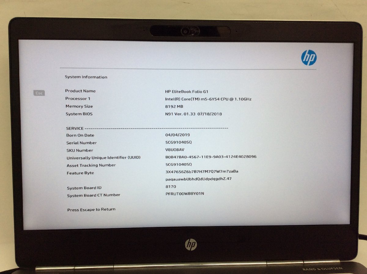 ジャンク/ HP HP EliteBook Folio G1 Intel Core m5-6Y54 メモリ8.19GB ストレージ無し 【K25448】