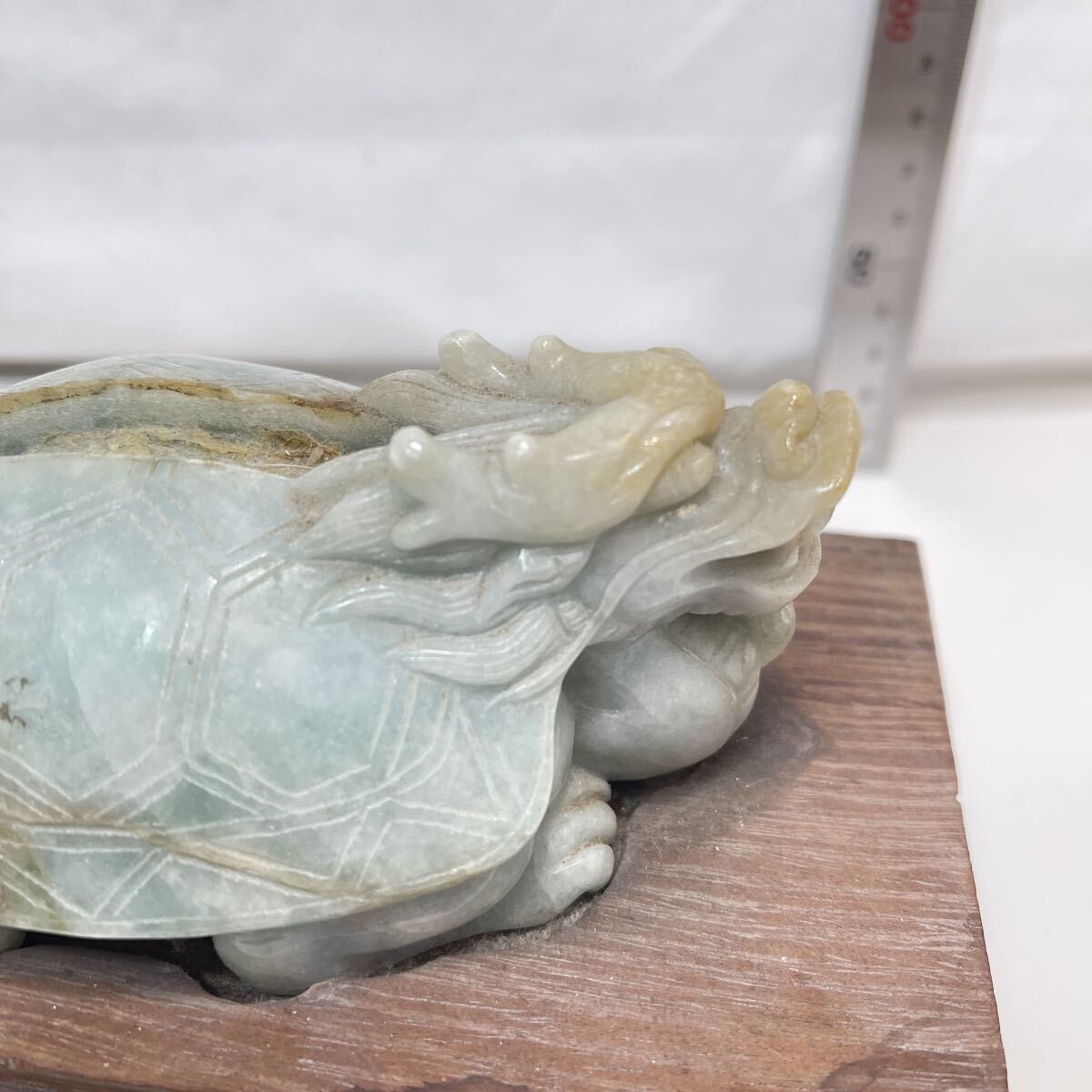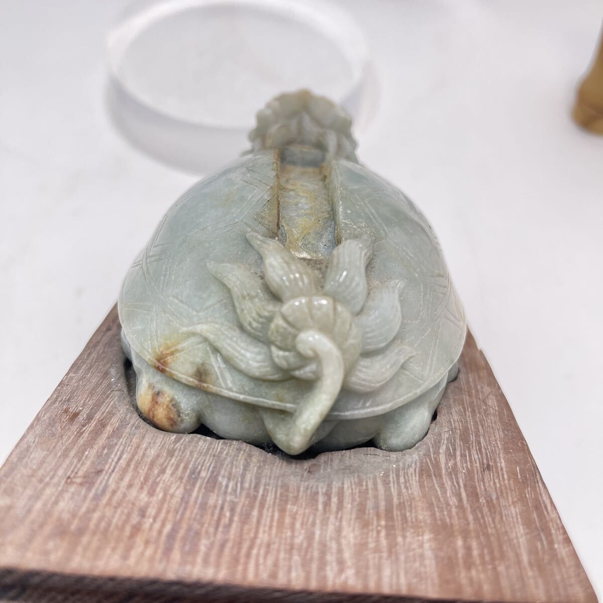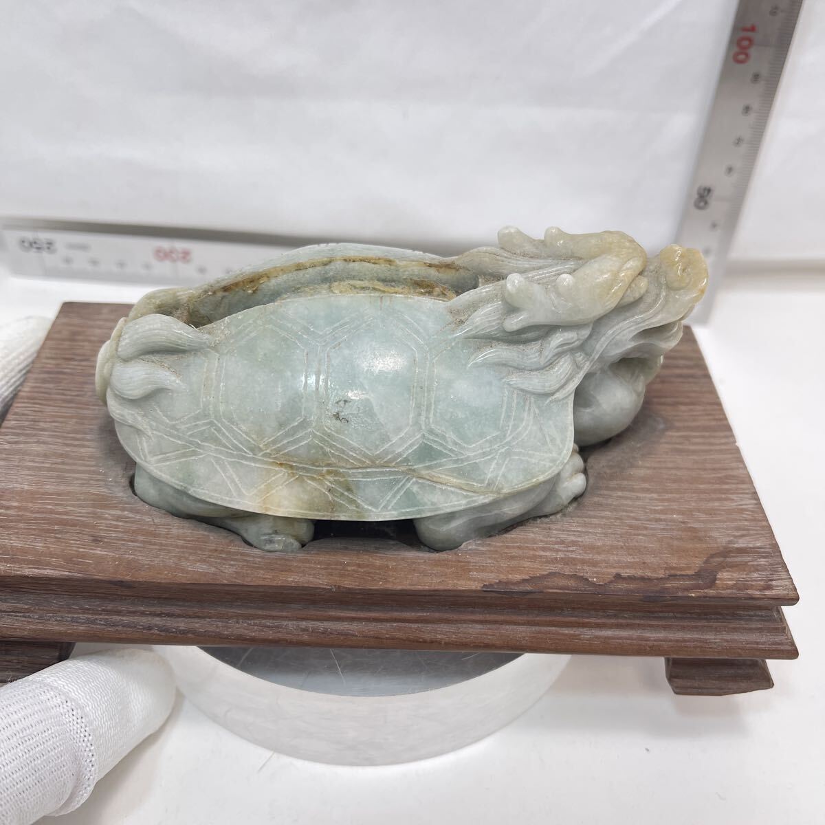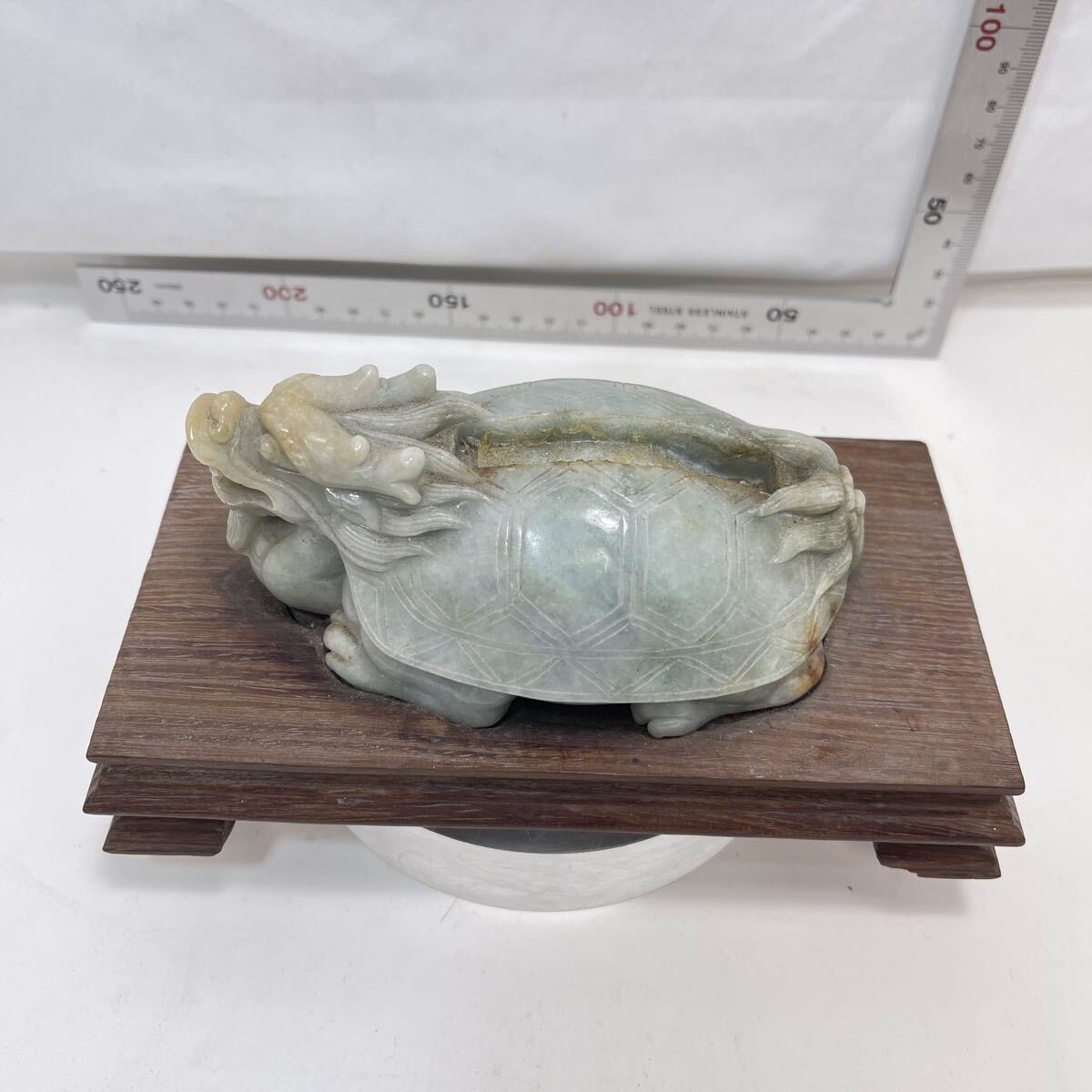 | 【B510】天然翡翠 龜形 鎮紙 筆架山 置物 唐木台付 ひすい 鎮紙 筆架 鎮尺 茶寵 文房具 茶道具 |