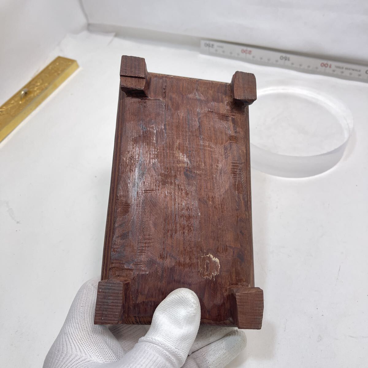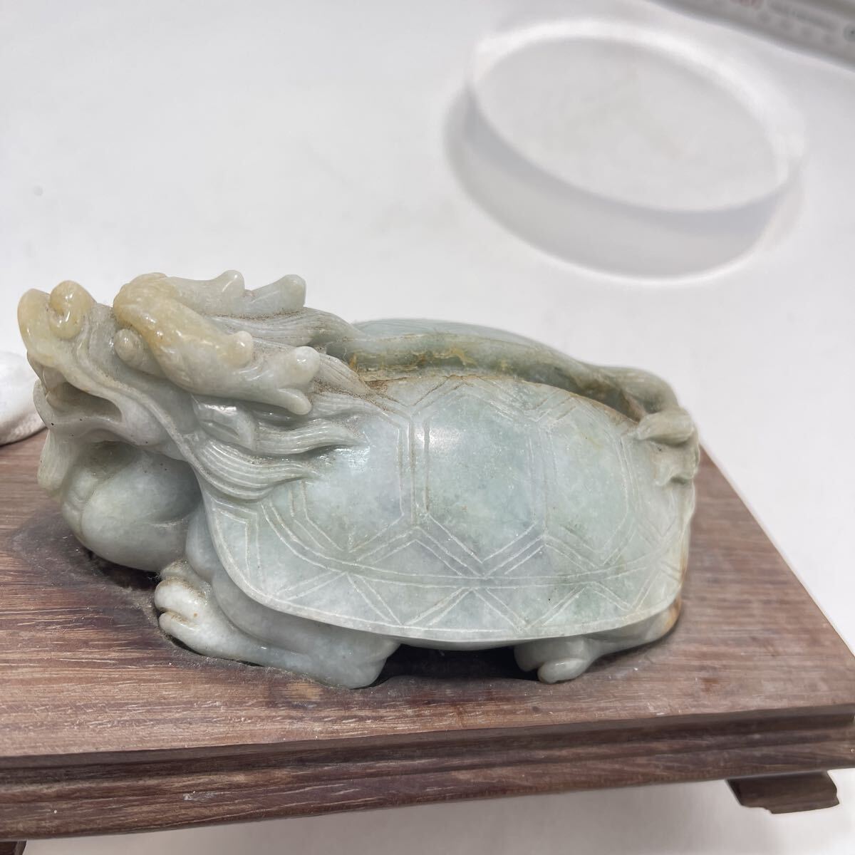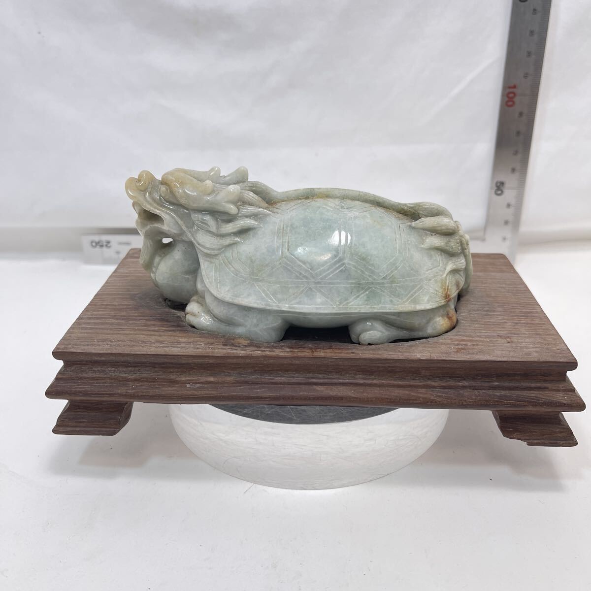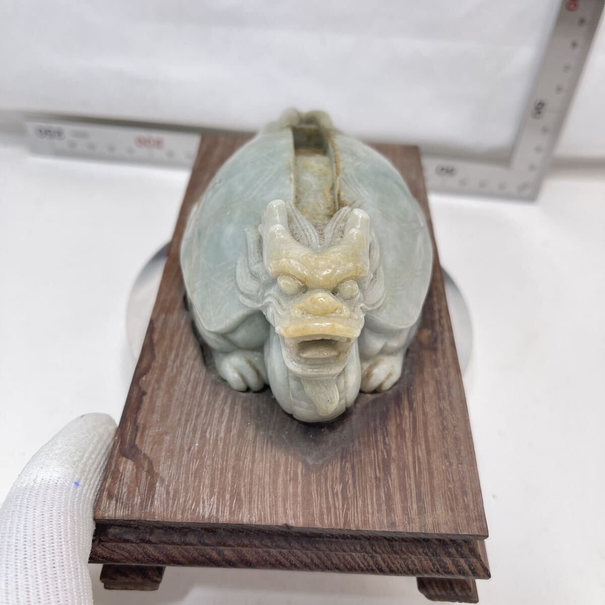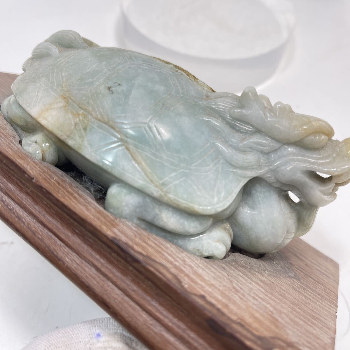 | 【B510】天然翡翠 龜形 鎮紙 筆架山 置物 唐木台付 ひすい 鎮紙 筆架 鎮尺 茶寵 文房具 茶道具 |