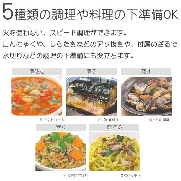 ●炊く・蒸す・煮る・茹でる・煮込むの5種類の調理方法が、これ1つでOK!