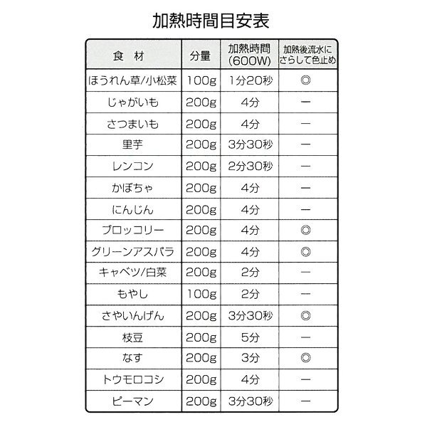 ※ 本製品の目安加熱時間は600Wでの場合です。