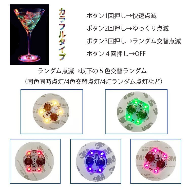 ◆光るコースター 5個セット 光るステッカー 貼り付け 電池駆動 3点灯モード グラスコップ ジョッキコップ シャンパンボトル バー キャバクラ パーティー クリスマスなどに【ホワイト】LEDCST05S
