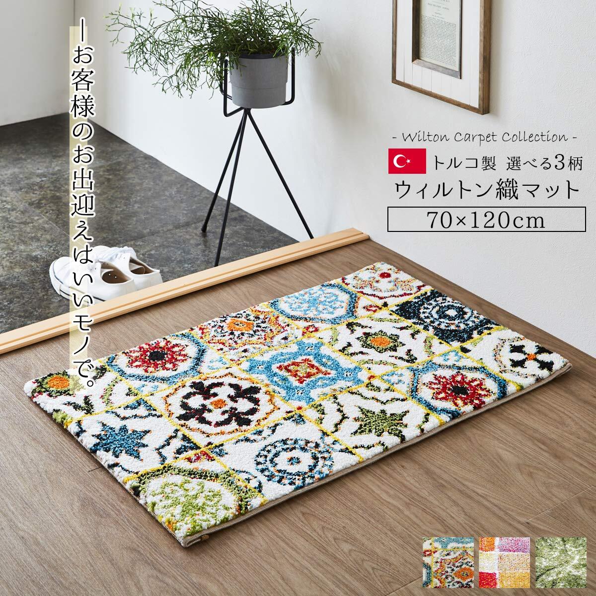 イケヒコ 玄関 選べる マット ラグ ウィルトン トルコ ダンテ 約70×120cm アイボリー アラベスク模様 抗菌防臭 消臭機能