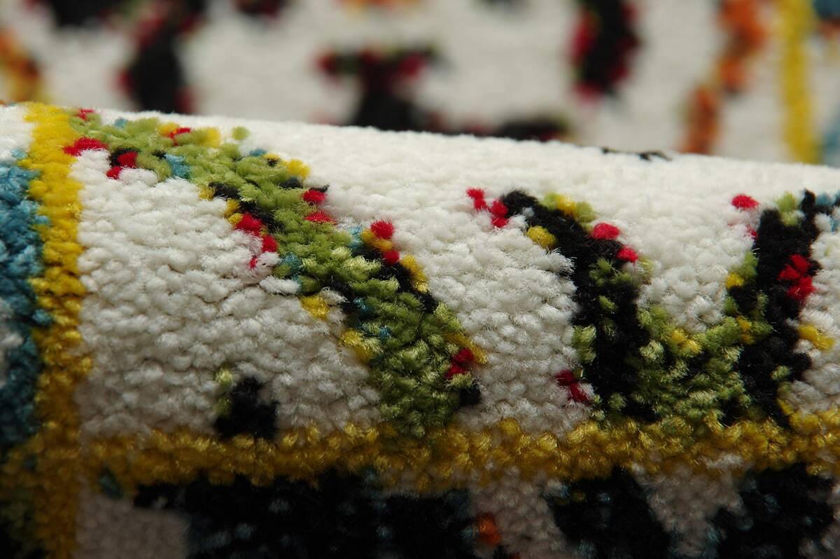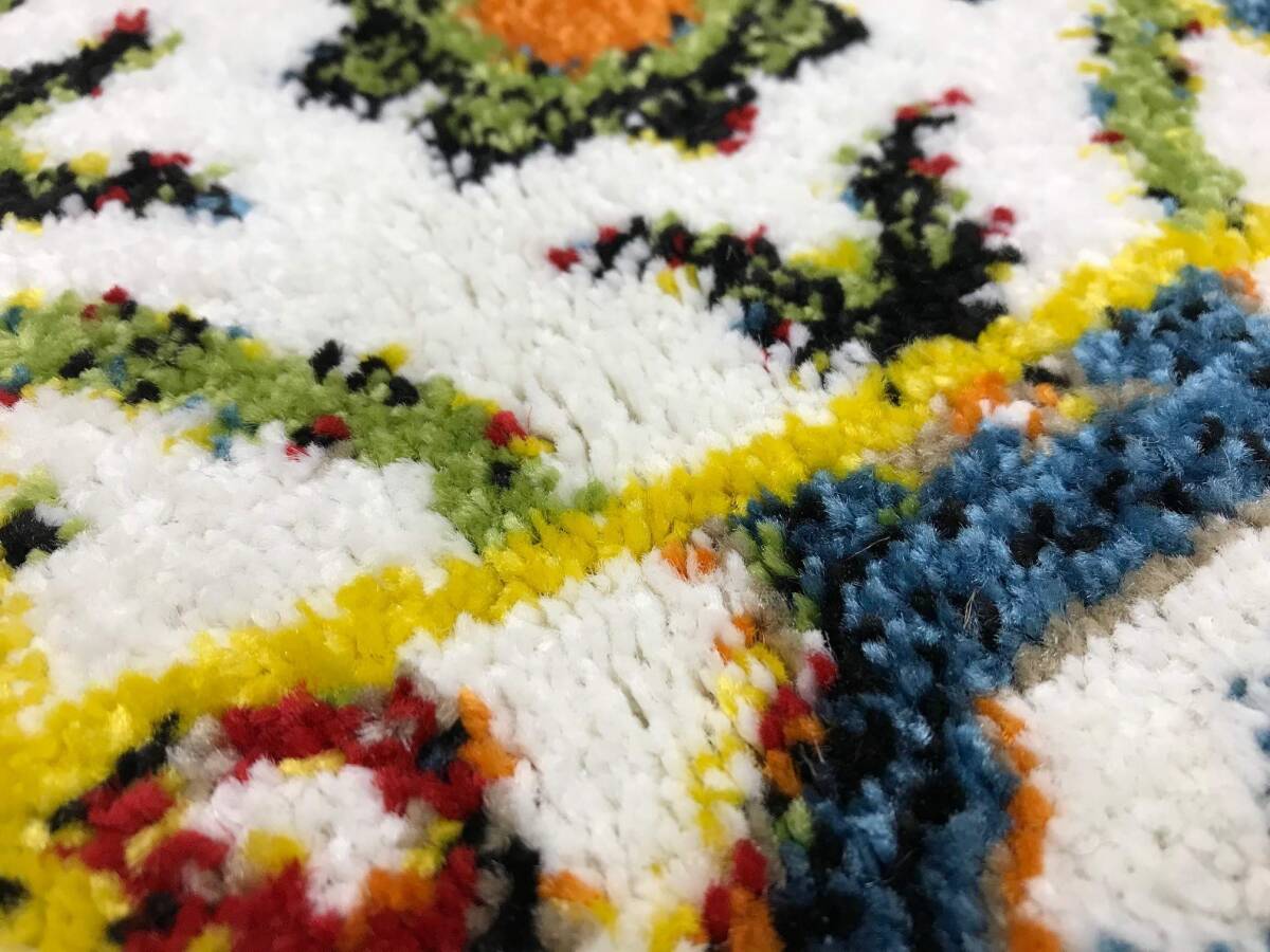 ウィルトン織りの玄関マットです。ラグでも人気の柄です。ウィルトン織りは非常に耐久性の高い織物です。家の中でも靴を履いて生活するヨーロッパで、土足で扱うことを前提として作られておりますので、長時間踏みつけてもヘタリにくく、弾力性もあり長くご使用頂けます。本商品の『繊維の密度を表すノット数』は112 000ノットです。本商品のパイル部分にはポリプロピレン素材を使用しております。ポリプロピレンはヘタリにくく、耐久性に優れ、繊維の中でも軽い素材です。また、汚れが付着しにくく、遊び毛や毛玉が非常に出にくいという特徴もあります。ホワイトをベースにカラフルな色で柄を出しています。玄関のワンポイントとして、ご使用していただきますと華やかになり高級感がでます。抗菌・防臭、消臭機能がついていますので、臭いが気になる玄関でも安心してお使いいただけると思います。