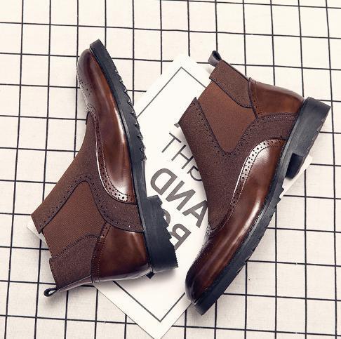 サイドゴア メンズ ビジネス レザー シューズ ブラウン 26.5㎝ 革靴 靴 カジュアル 屈曲性 通勤 軽量 インポート品【n152】