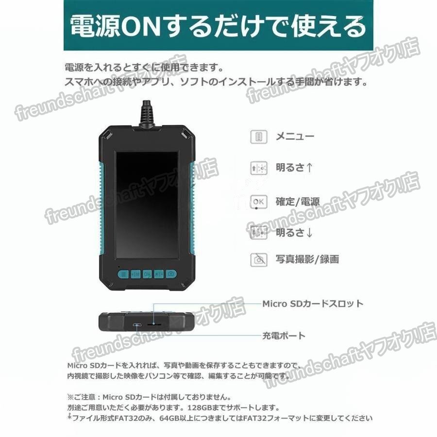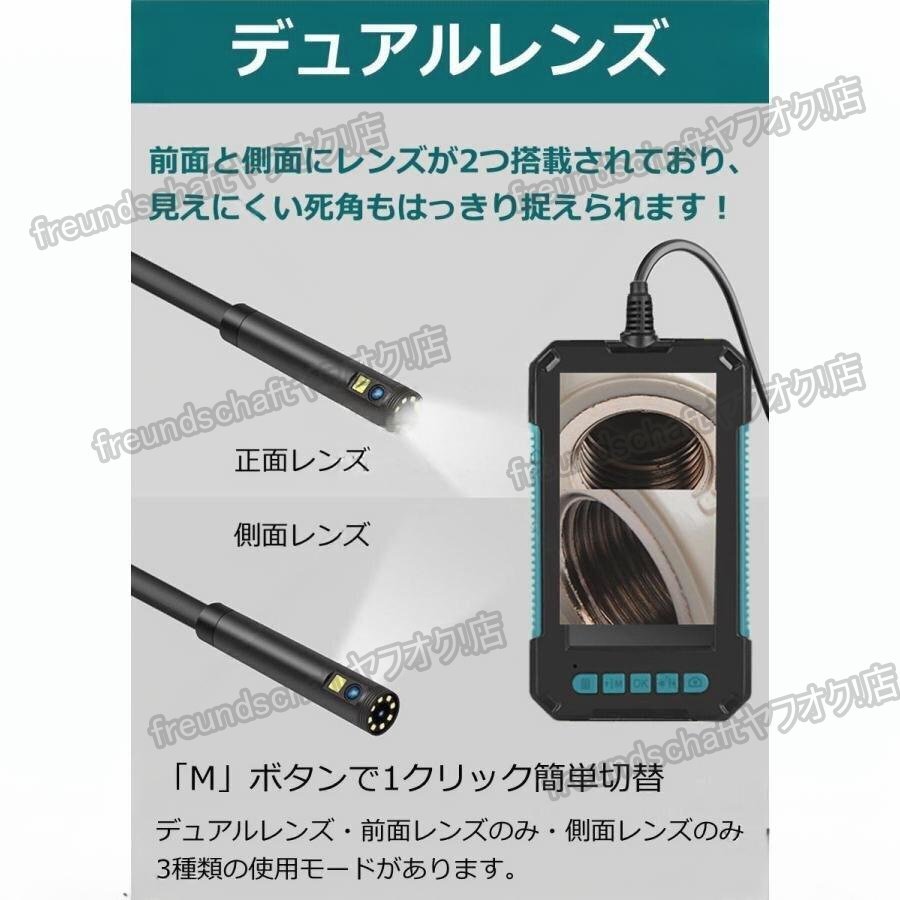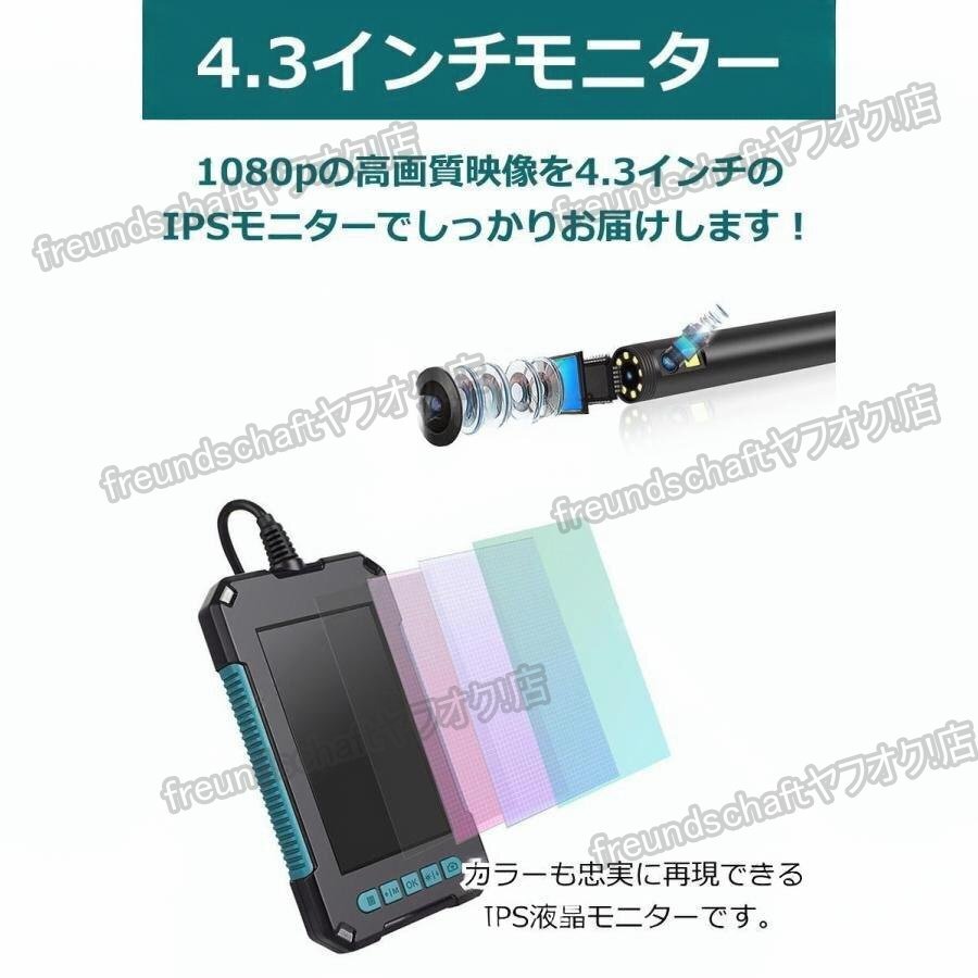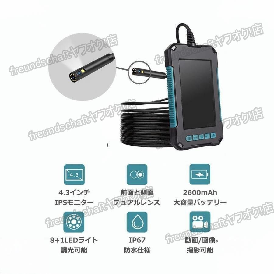内視鏡カメラ ファイバースコープカメラ 4.3インチ 液晶モニター付 デュアルレンズ 1080p 5m LEDライト付き スネーク カメラ zchw0288