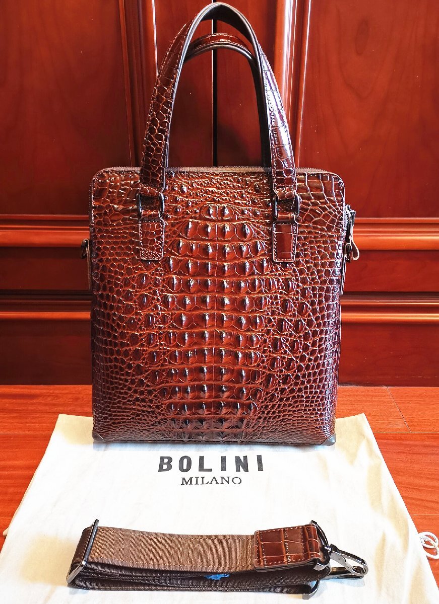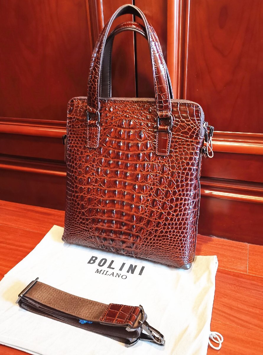 最高峰イタリアミラノ発・ボリニのビジネストートバッグ。 これは本当に素晴らしい傑作です。本体には最上級牛革を使用し上品なクロコダイル型押し仕上げしております。革ライクな表情を持ちながら、長く愛用できる一品。多くのファンから支持されている傑作です。
