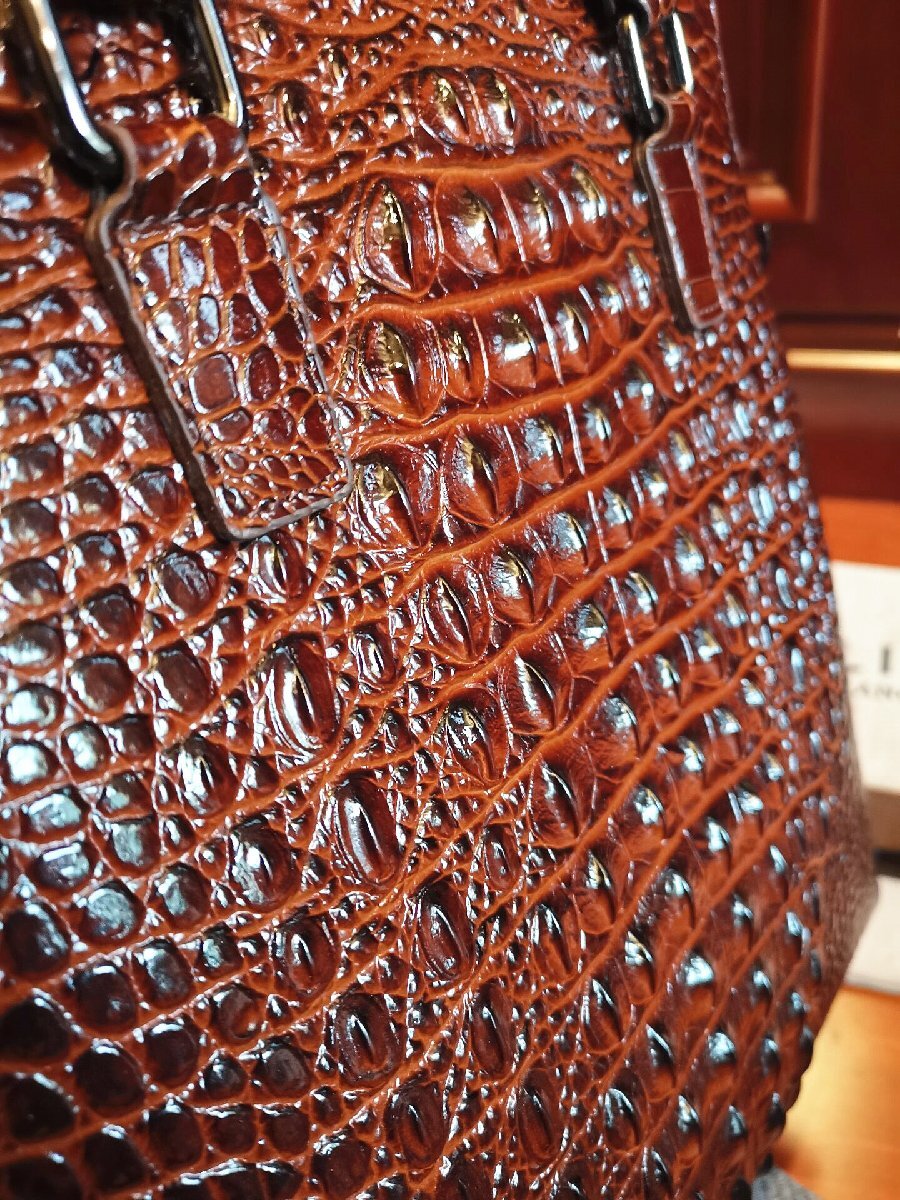 最上級逸品※定価18万◆イタリア・ミラノ発*BOLINI/ボリニ・最上級牛革・クロコダイル*トートバッグ/茶色