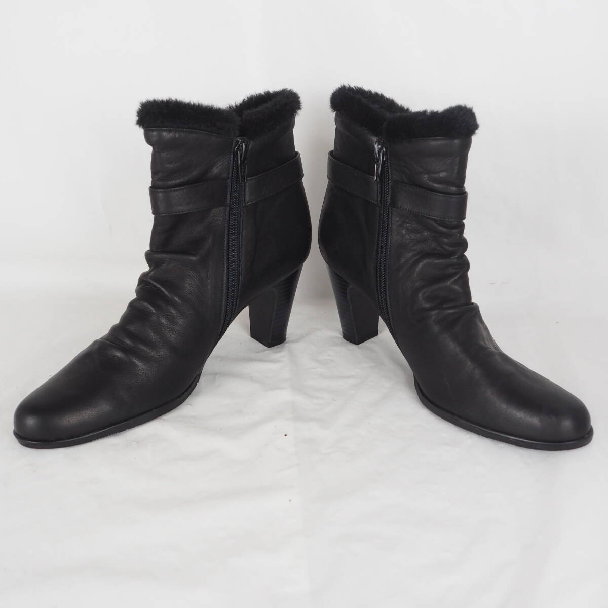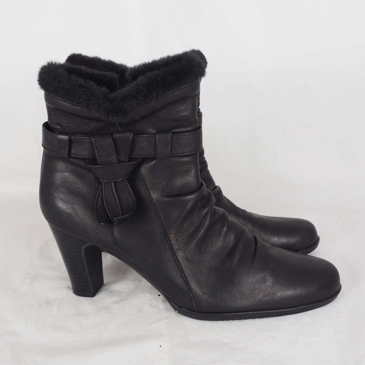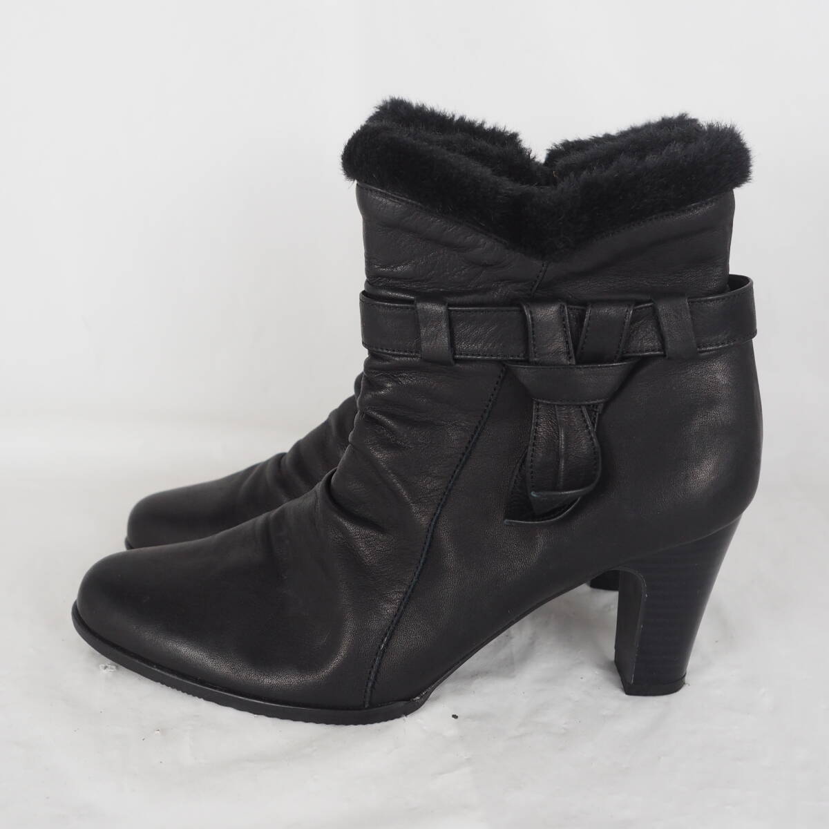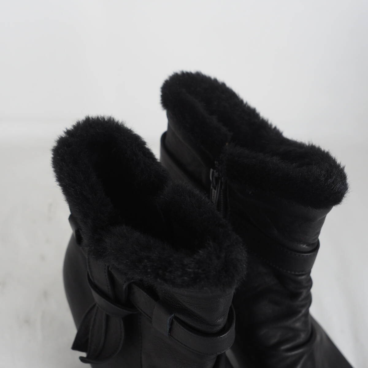 | ページをご覧いただきありがとうございます^^靴、ブーツを中心に出品しております。 しなやかなレザー調の質感が足元に上品な印象を与え、女性らしいシルエットを引き立てるショートブーツです。 落ち着いたブラックカラーにやさしいファー調の履き口が映え、季節感のある装いを楽しめます。 安定感のあるヒールで歩きやすく、きれいめからデイリーまで幅広く活躍する一足です。 ☆商品詳細☆
