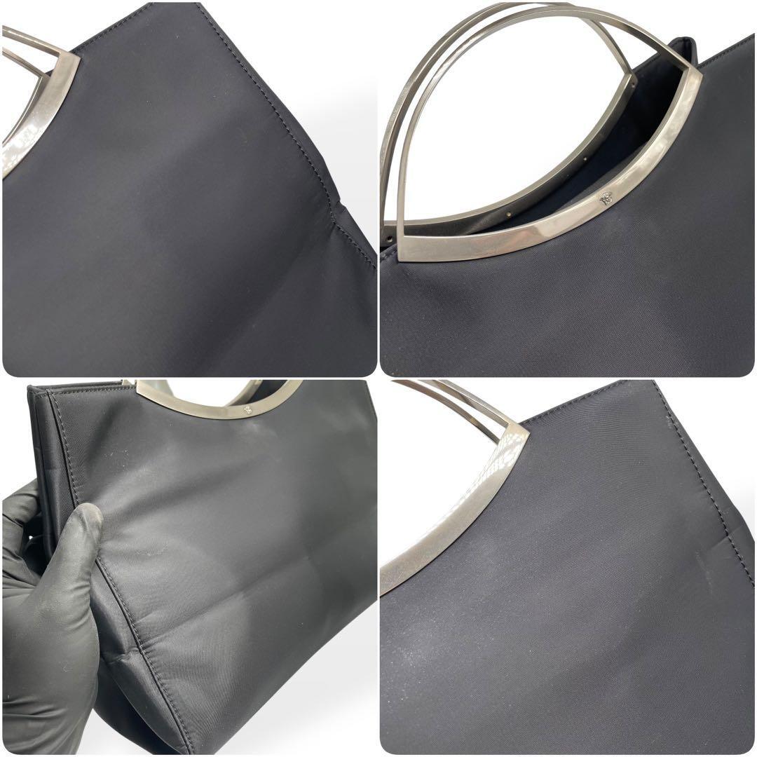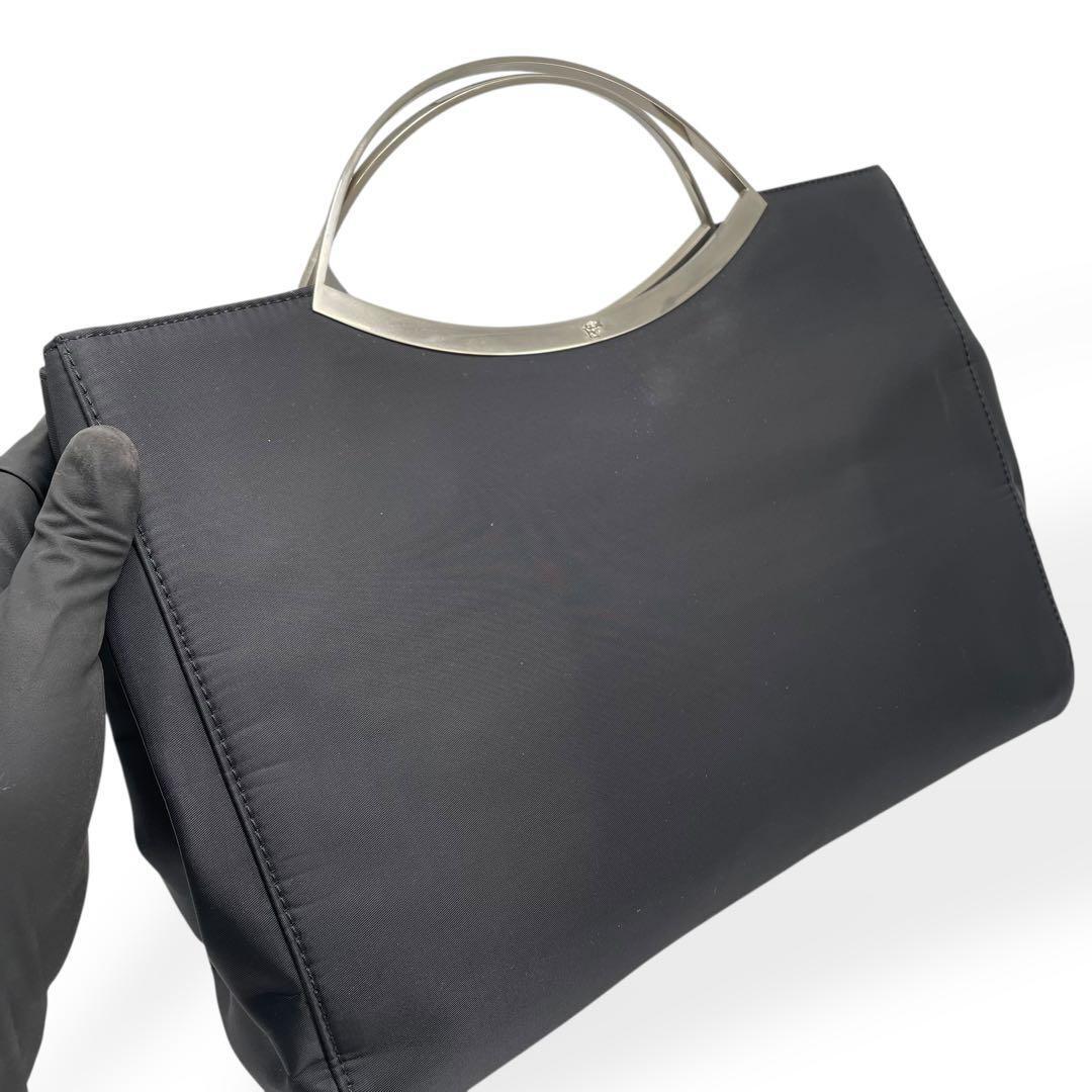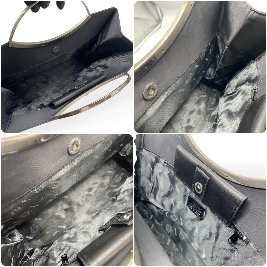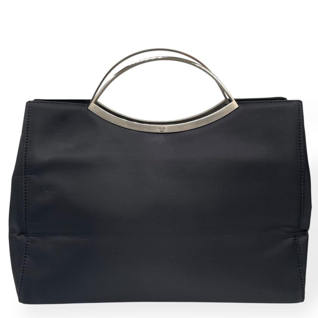 極美品 希少 GIANNI VERSACE ジャンニヴェルサーチ ハンドバッグ ブラック フォーマル ナイロン シルバー金具