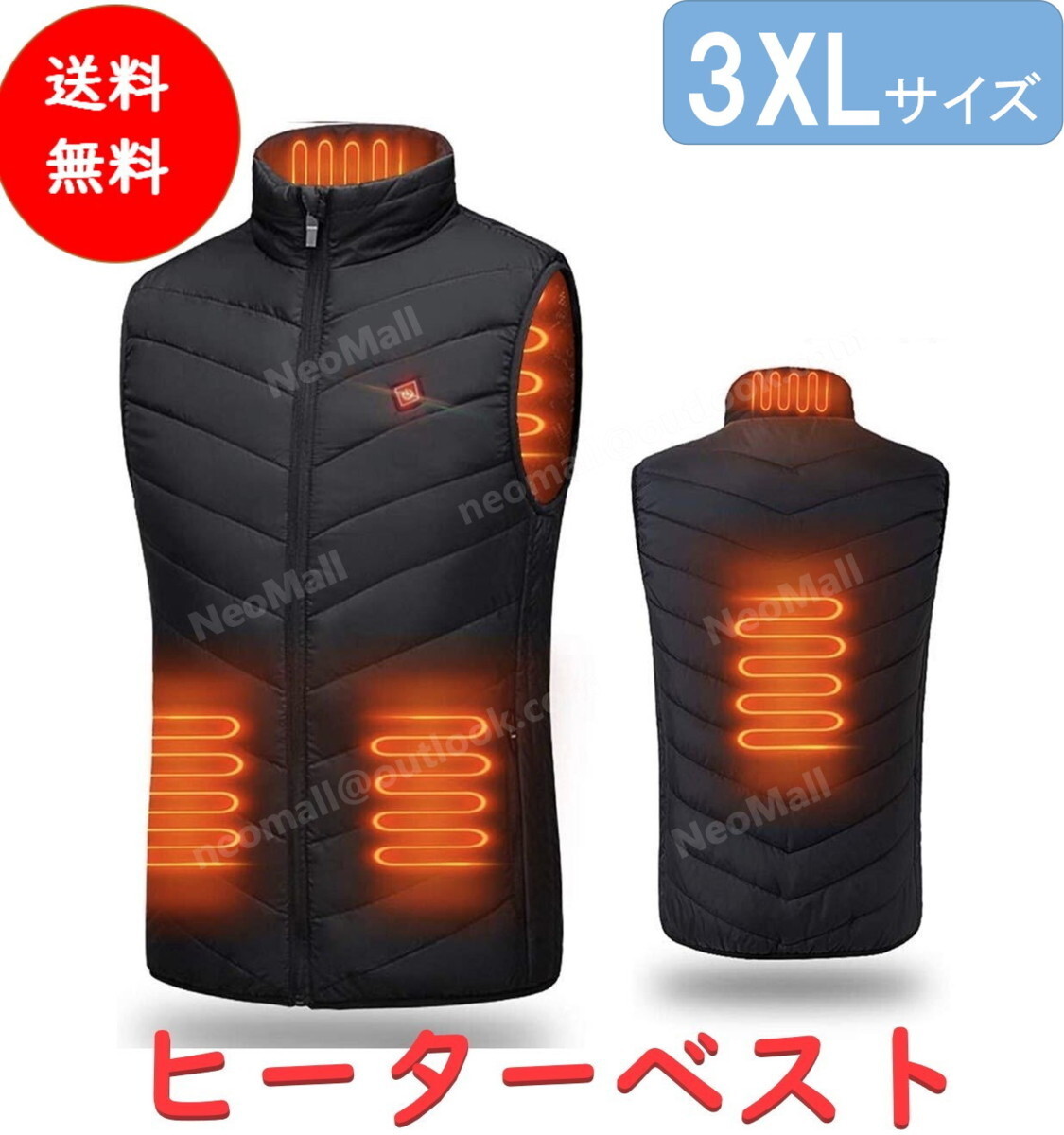 ヒーター内蔵 発熱ベスト ブラック 3XLサイズ 激暖 防寒グッズ 通勤通学 温度調節 チョッキ アウトドア USB給電 屋外 汎用 0-059