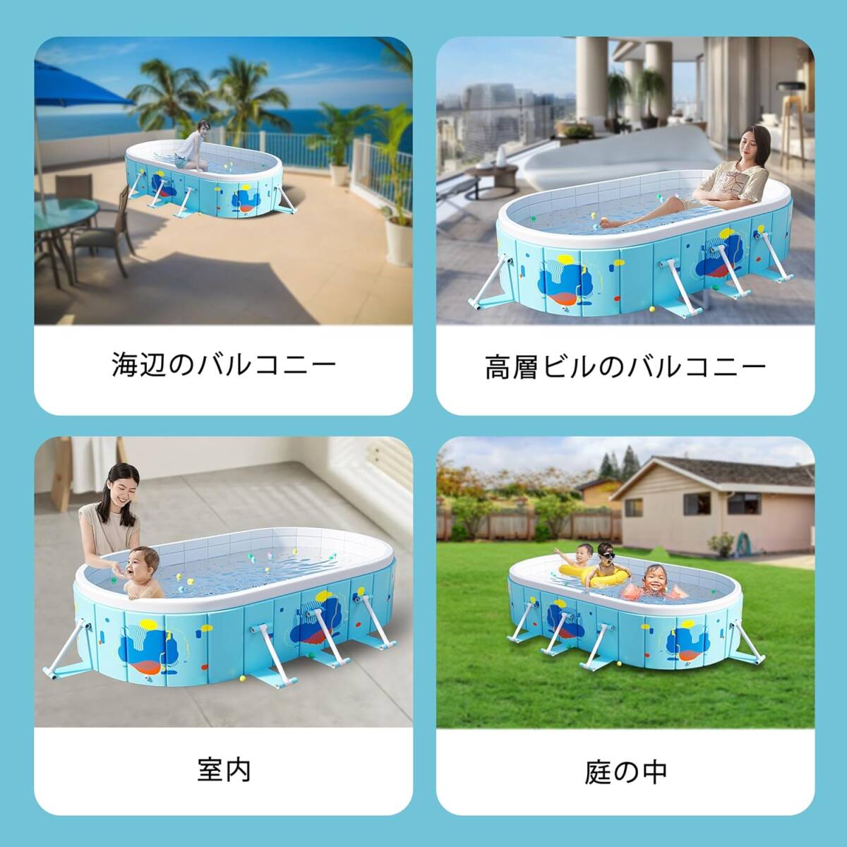 【水漏れ防止・安定した三角構造】厚さ7mmの高強度5層コンポジットでを使用し、底面には3mmの高品質PVC素材を使用しているので、耐摩耗性と耐パンク性、水漏れを防ぎ、従来のインフレータブルプールに比べて3倍以上長持ちします。側面には安定した三角形の支持板を使用し、プールの圧力や変形に強くなっているので、夏の水遊びも楽しくできます!