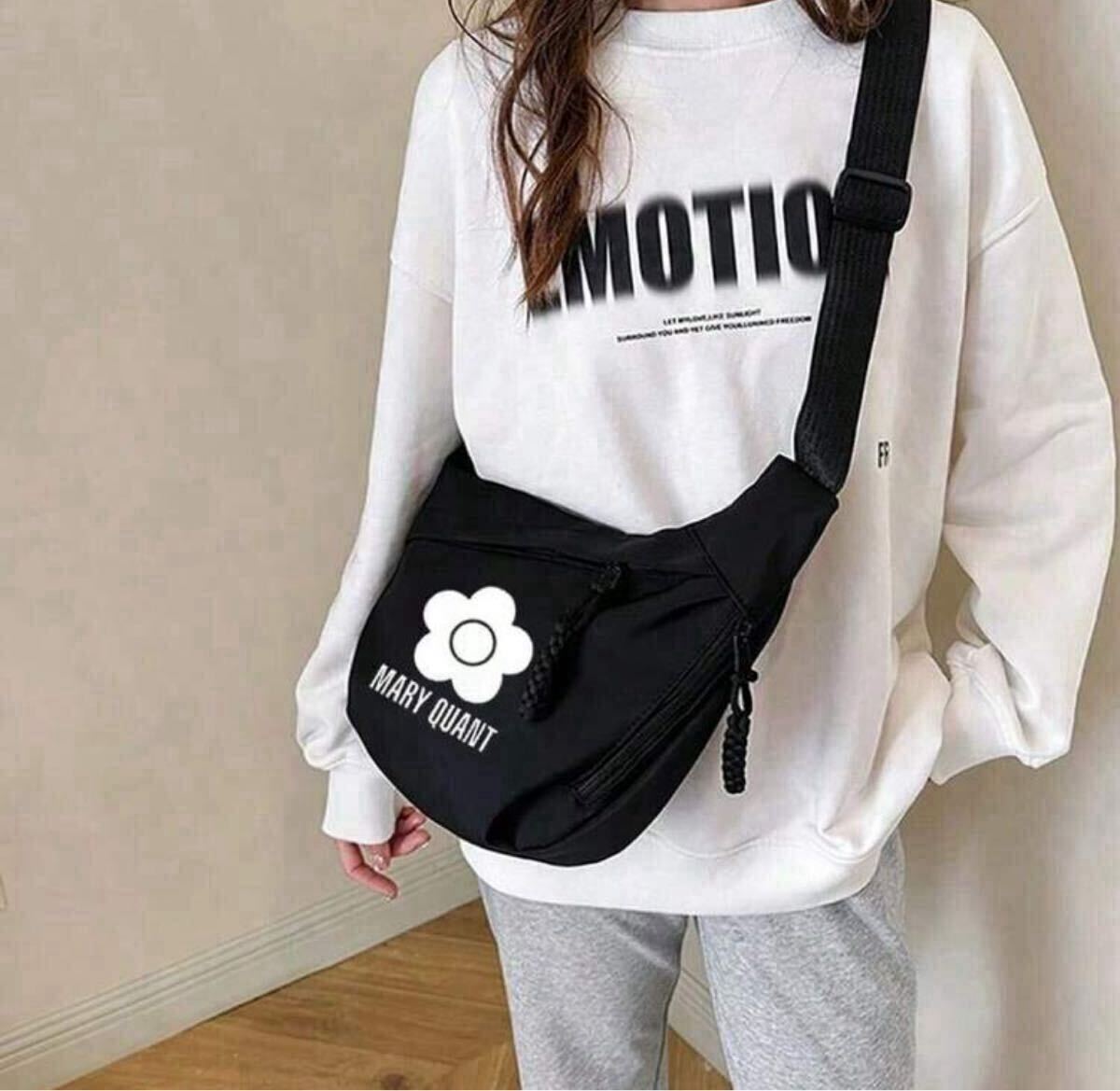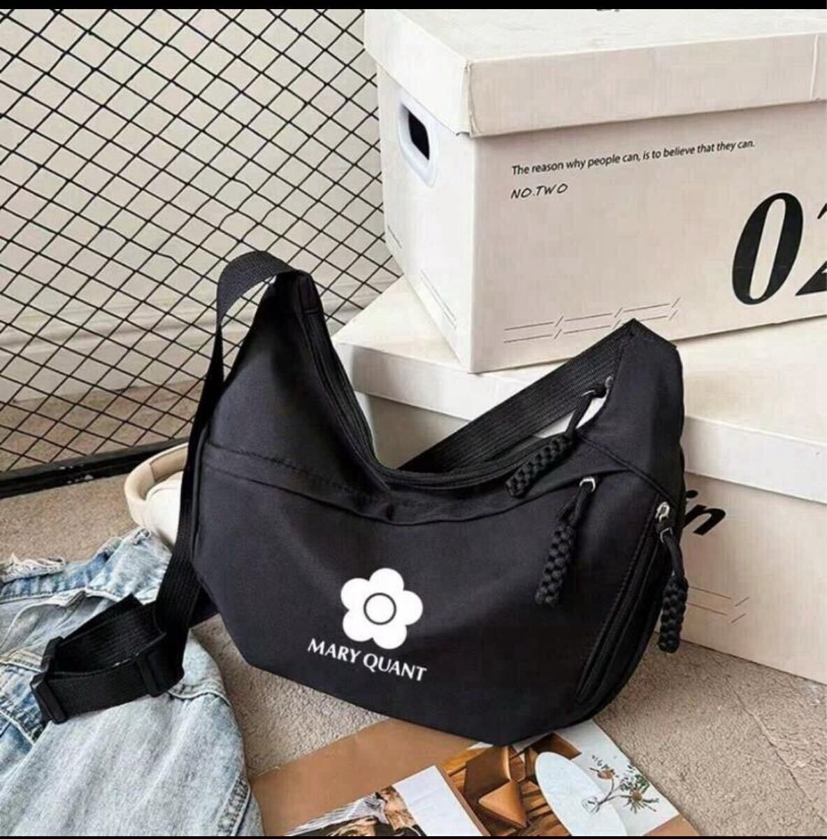上品なブラックカラーで、どんなコーデにも合わせやすい万能ショルダーバッグです。