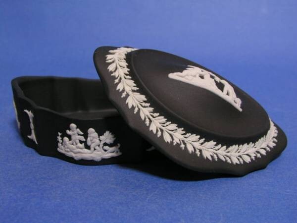 ウェッジウッド ブラックジャスパー 縁が平面になっていない可愛い変形蓋物 小物入れ