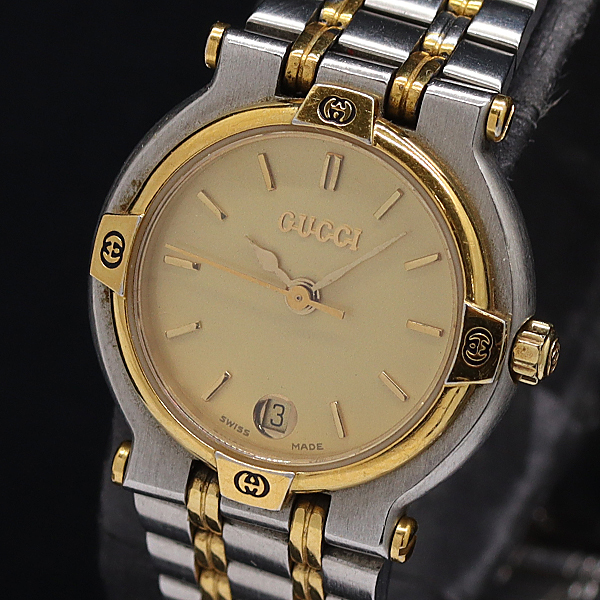1円 グッチ 9000L コンビ QZ ゴールド文字盤 レディース腕時計 8008000 12ANT MST