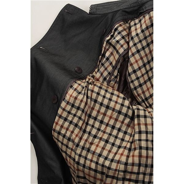 A4296/美品 秋冬 DAKS LONDON ダックス コットン 光沢 裏チェック 中綿 ライナー付き ロング トレンチコート 17ABR 灰色/日本製 メンズ