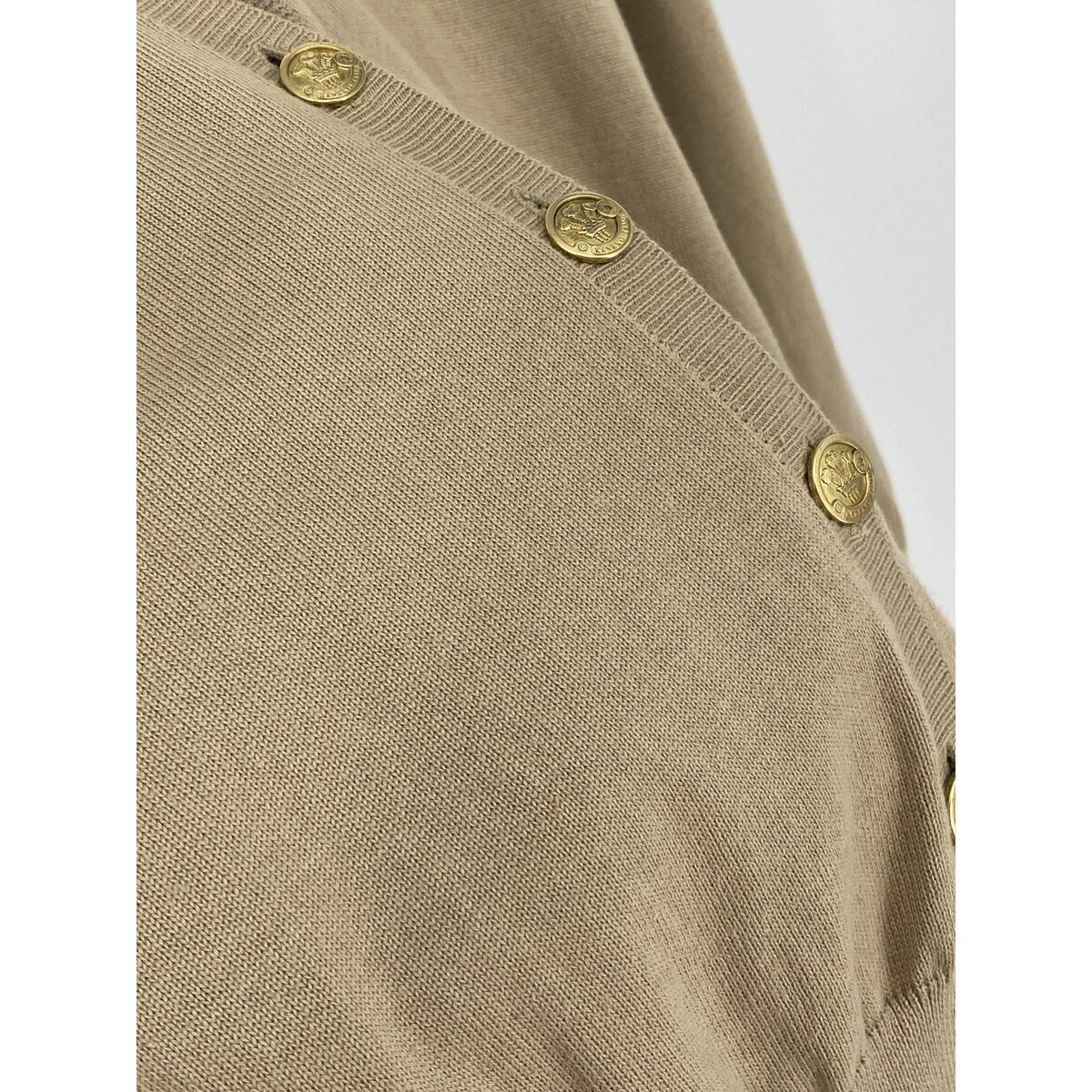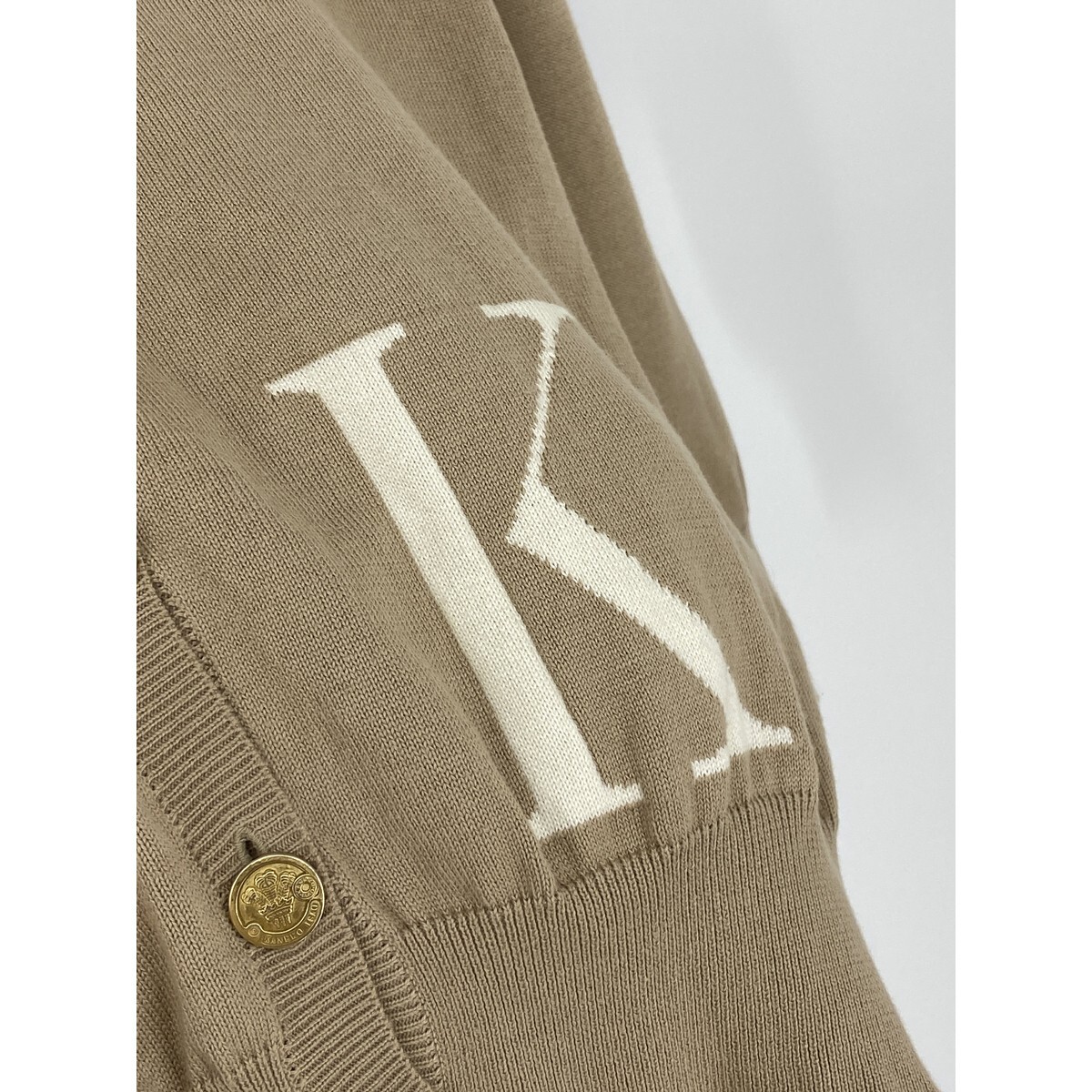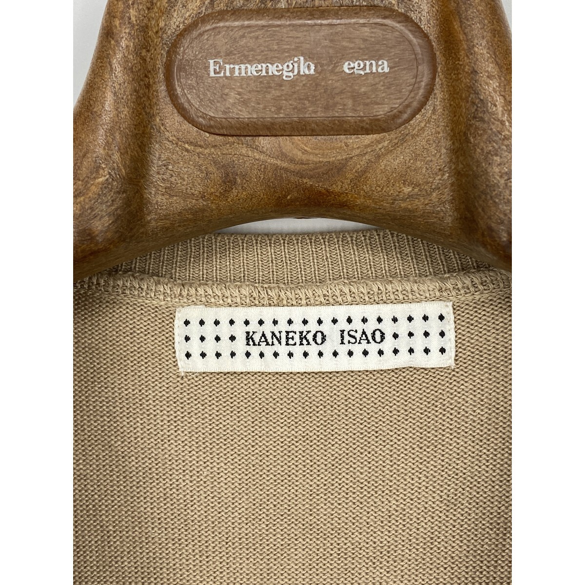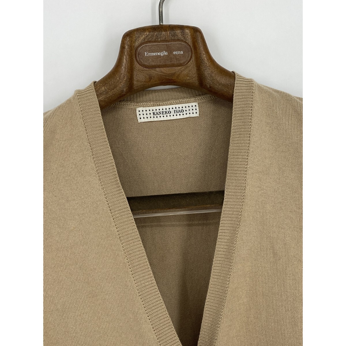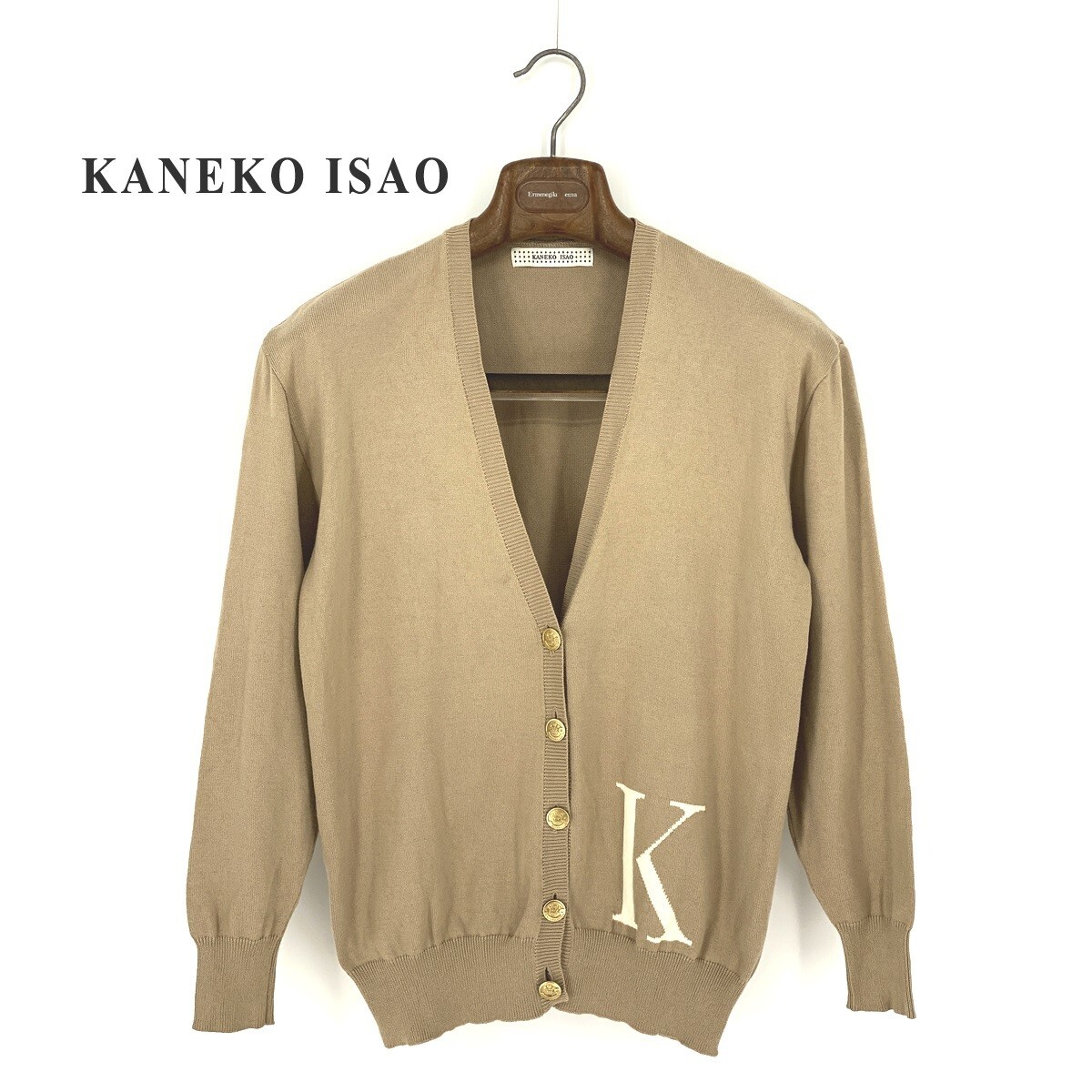 B0840/ビンテージ 90s 美品 KANEKO ISAO カネコイサオ 金ボタン 長袖 ニット リブ カーディガン ジャケット L程 ベージュ レディース
