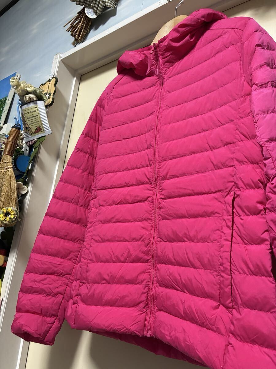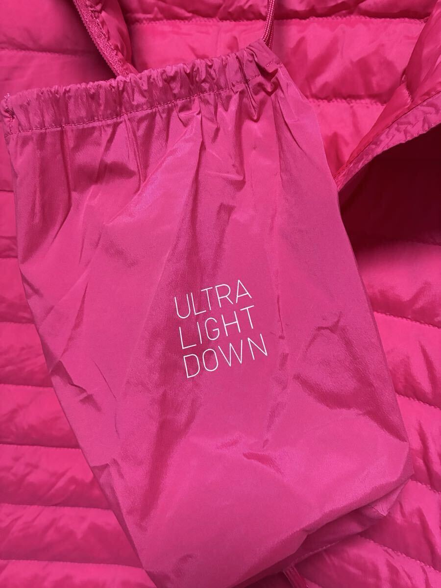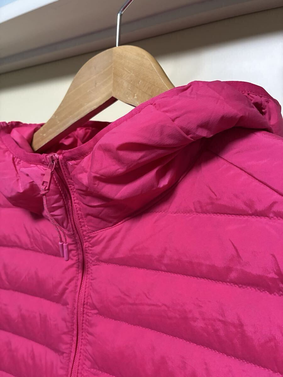 ★UNQLO.ULTRA.LIGHT.DOWN(ウルトラライトダウン)★華やかな色合いで軽量で暖かなダウンジャケットになります。ピンク系を基調とした色合いでフード付き前ファスナーになっています。ウエスト辺りの両サイドにはファスナー付きポケットが付いています。キルティング加工されていてシンプルながらお洒落な一枚に仕上がっています。