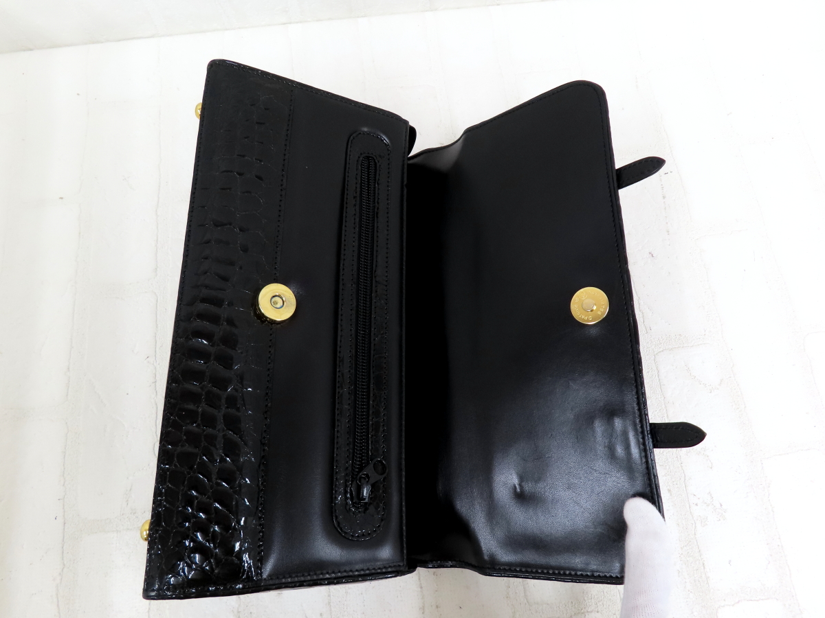 ◆超美品◆DALUVANI ダルヴァ―ニ◆シャイニング クロコダイル 本 ワニ 革◆ハンド バッグ◆ブラック ゴールド金具◆フラップ◆A14643