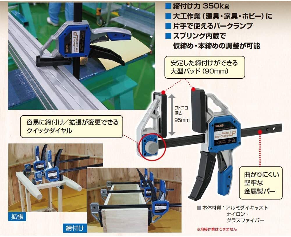 大工作業(建具、家具、ホビー)に片手でご使用できる、クイックバークランプです。 クイックダイヤル機能により、作業がスムーズに行えます。 スプリング内臓により、仮締めや本締めの調整が可能です。 クランプバーは曲がりにくい、金属製バーです。 溶接作業にはご使用できません。