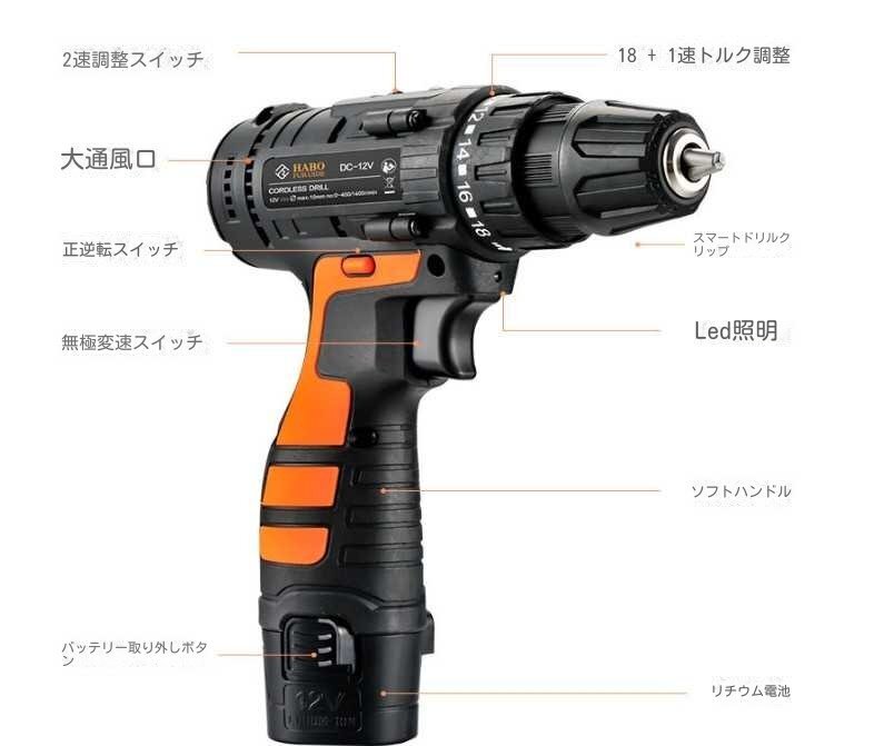 電動ドライバー工具セット、リチウム電池式ドリル、多機能充電式ドリル、金物工具 (D146)
