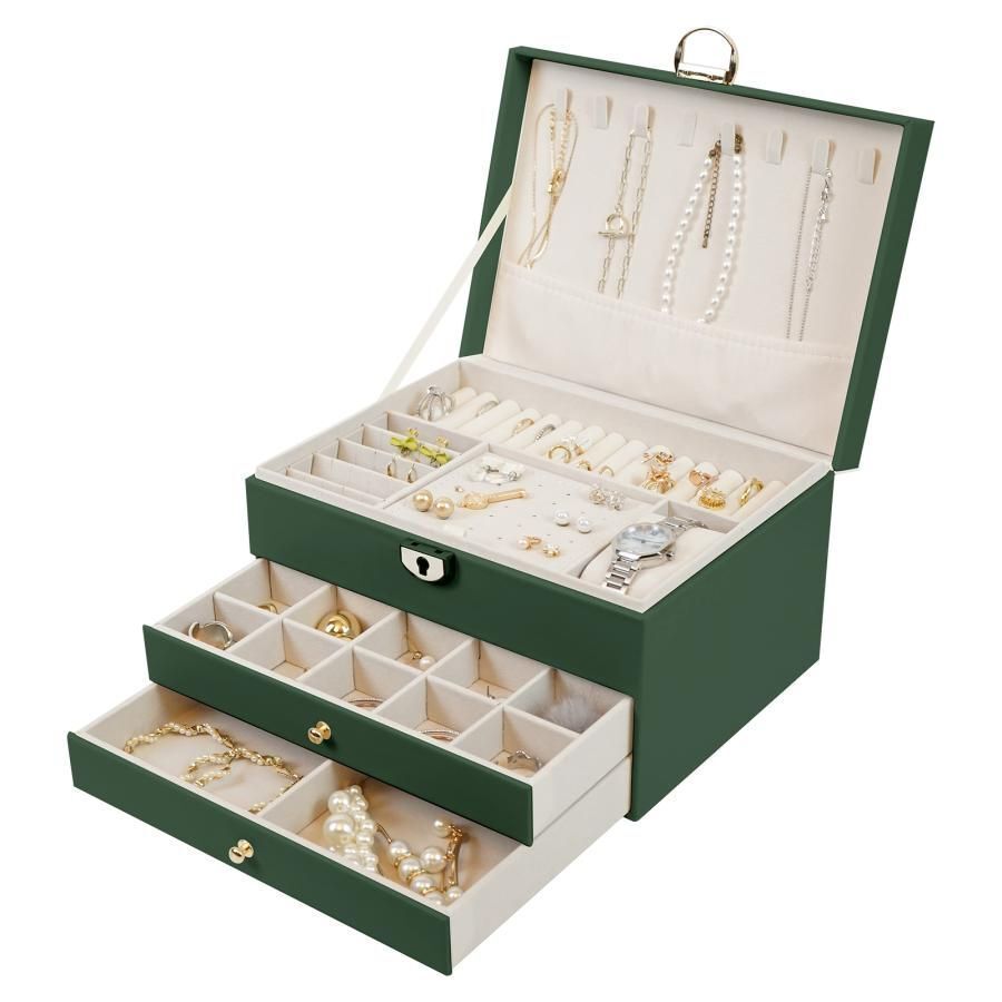 アクセサリーケース ジュエリーボックス 3段 鍵付き おしゃれ 大容量 アクセサリー収納ボックス 時計 指輪 ピアス ネックレス グリーン