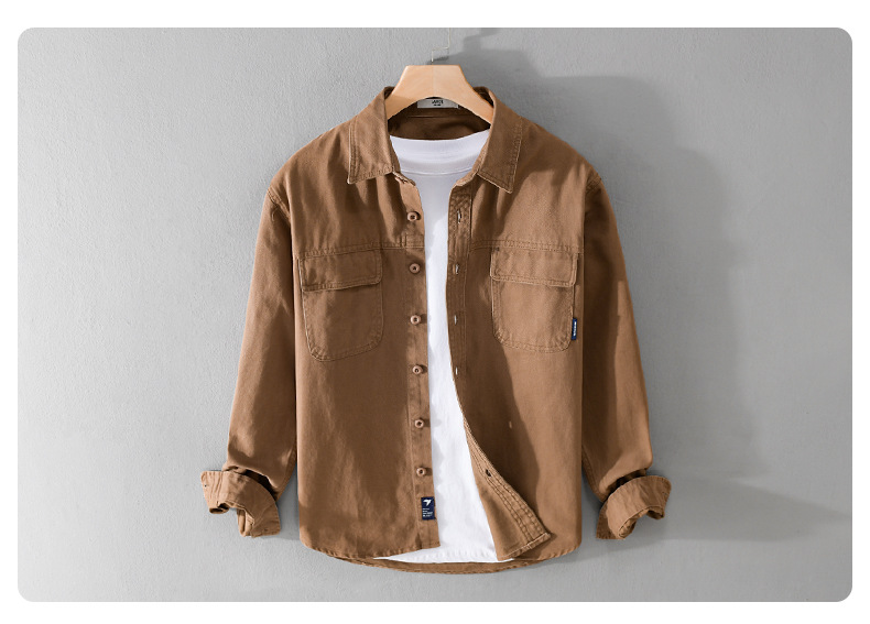 シャツ メンズ 長袖シャツ ワークシャツ 両ポケット 胸ポケット カバーオール シャツジャケット 綿 ゆったり カジュアルシャツ 羽織り ワンポイント おしゃれ 春物 秋服 仕事着 ユニフォーム 作業着 ワークウェア ストリート