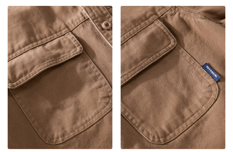 モノを落しにくいようフラップを付け工夫された両胸ポケットがデザインのアクセント。